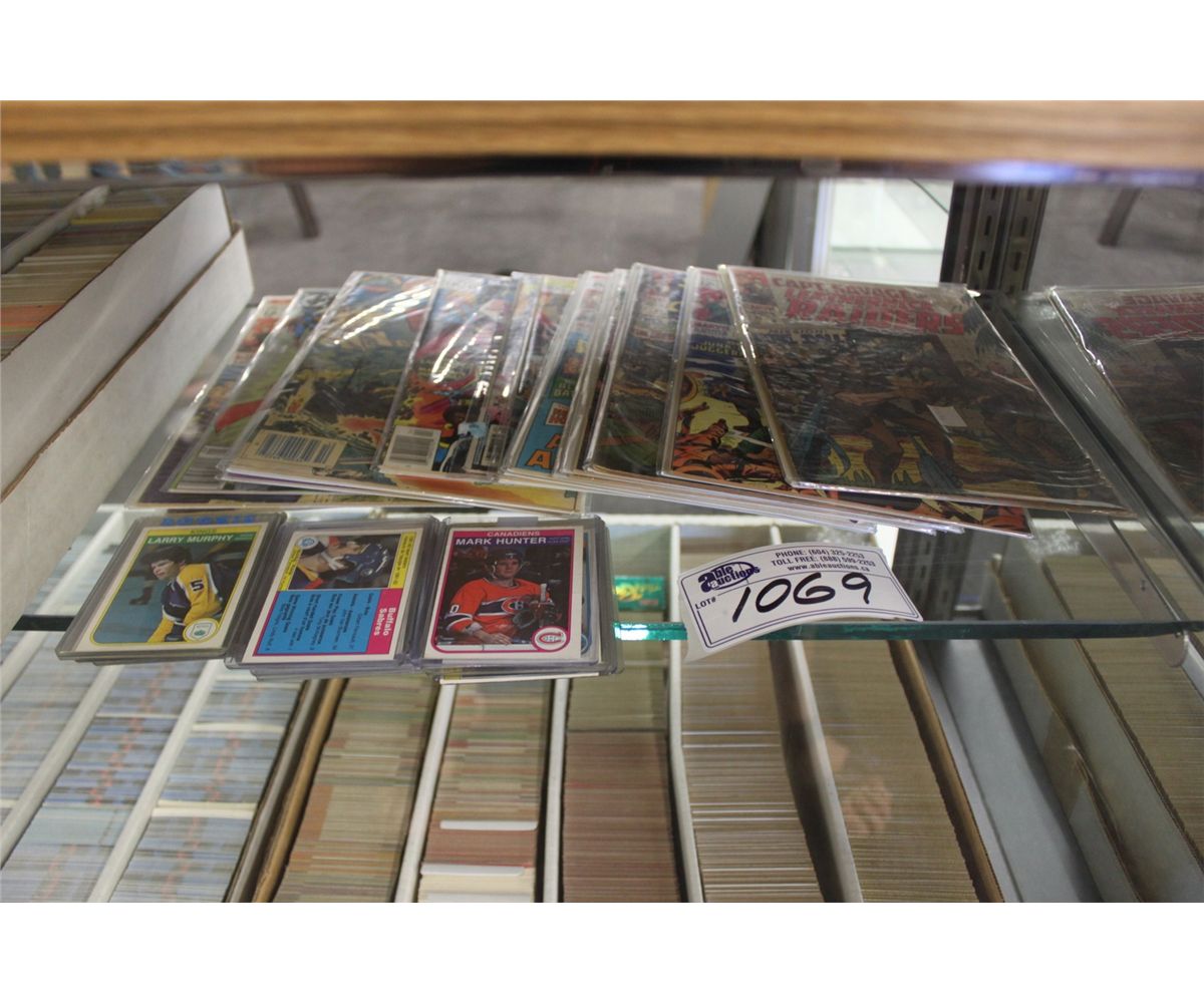 ASSORTED BAGGED COMIC BOOKS AND HOCKEY CARDS