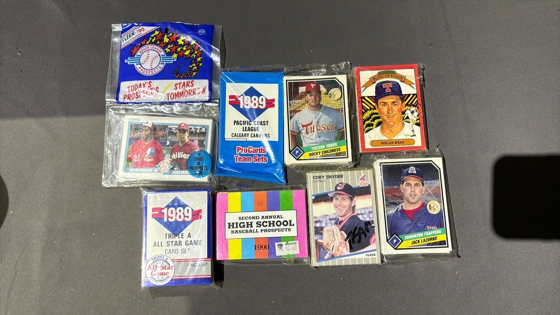 ASSORTED BASEBALL CARD SETS INCLUDING; 1989 PROCARDS TEAM SET, PACIFIC COAST LEAGUE CALGARY CANNONS, 1990 LITTLE SUN HIGHSCHOOL BASEBALL PROSPECTS SET - 1-24 CARDS (FACTORY SEALED), 1989 CMC PACIFIC COAST LEAGUE, TRAPPER SET - 1-25 CARDS (FACTORY SEALED) & MORE