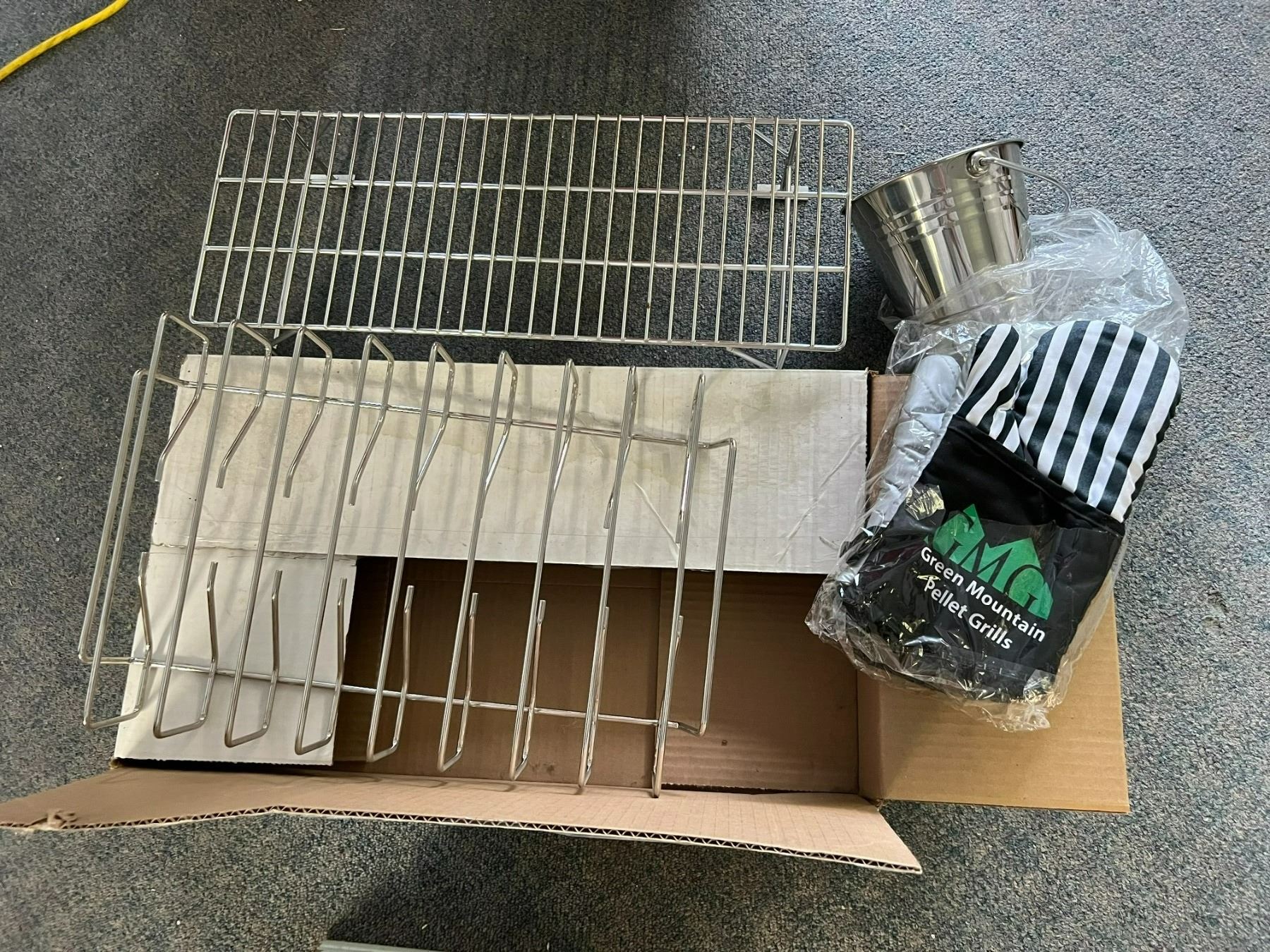 ASSORTED BBQ ACCESSORIES - RIB RACK, DRIP BUCKET, BBQ MITTS & ELEVATED RACK