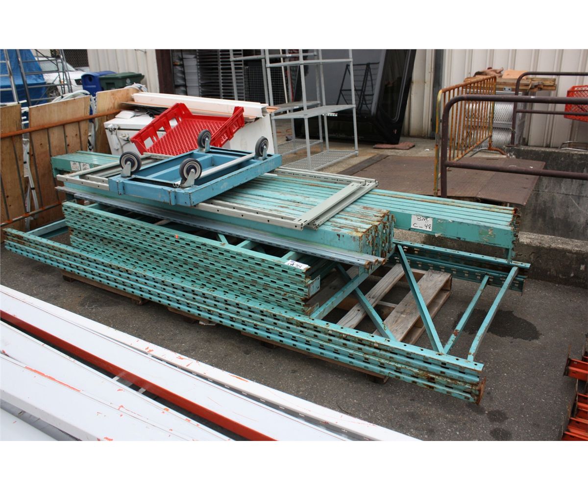 ASSORTED BLUE PALLET AND SHOP RACKING