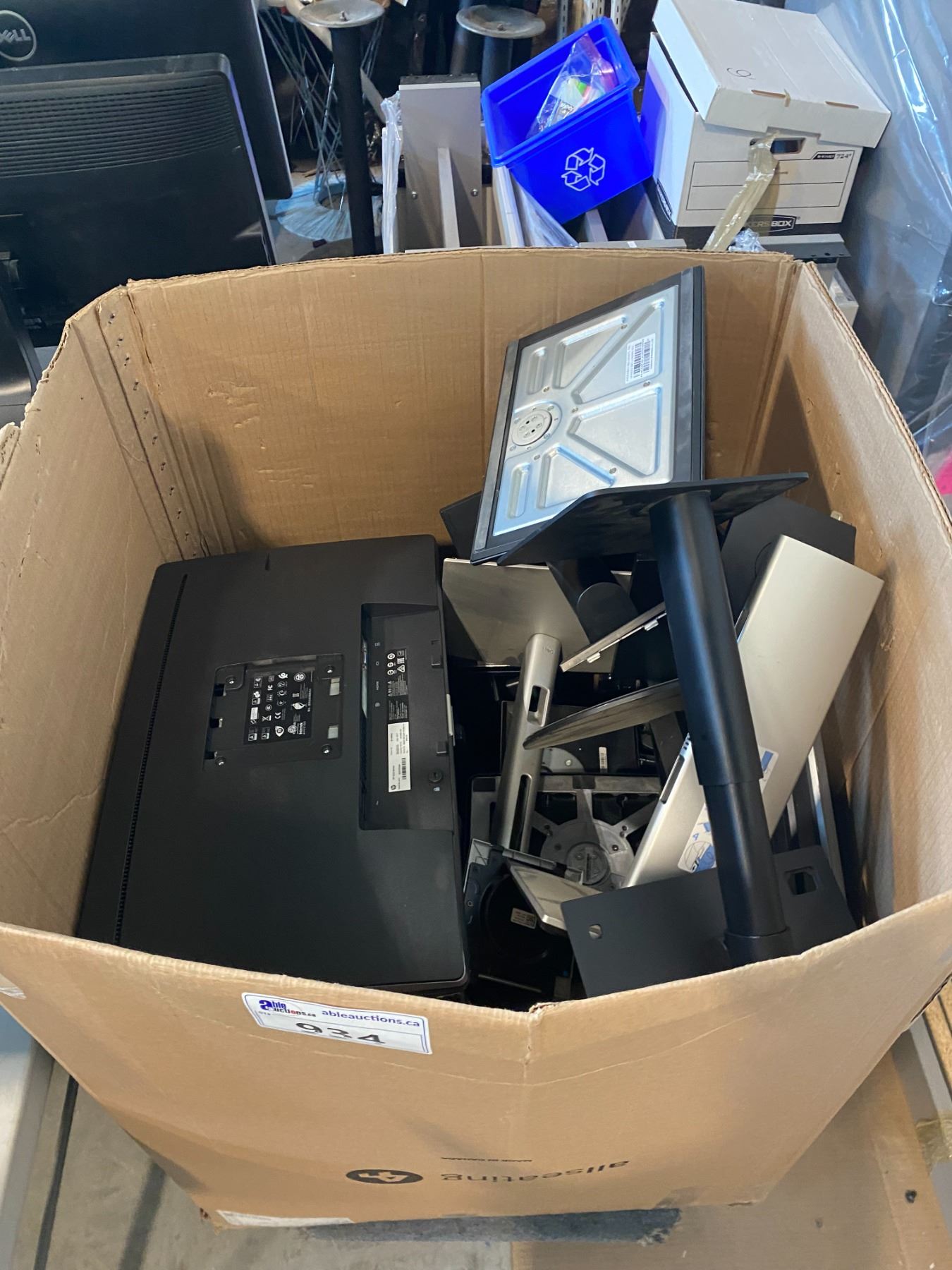 ASSORTED BOX OF HP LCD MONITORS AND MONITOR STANDS