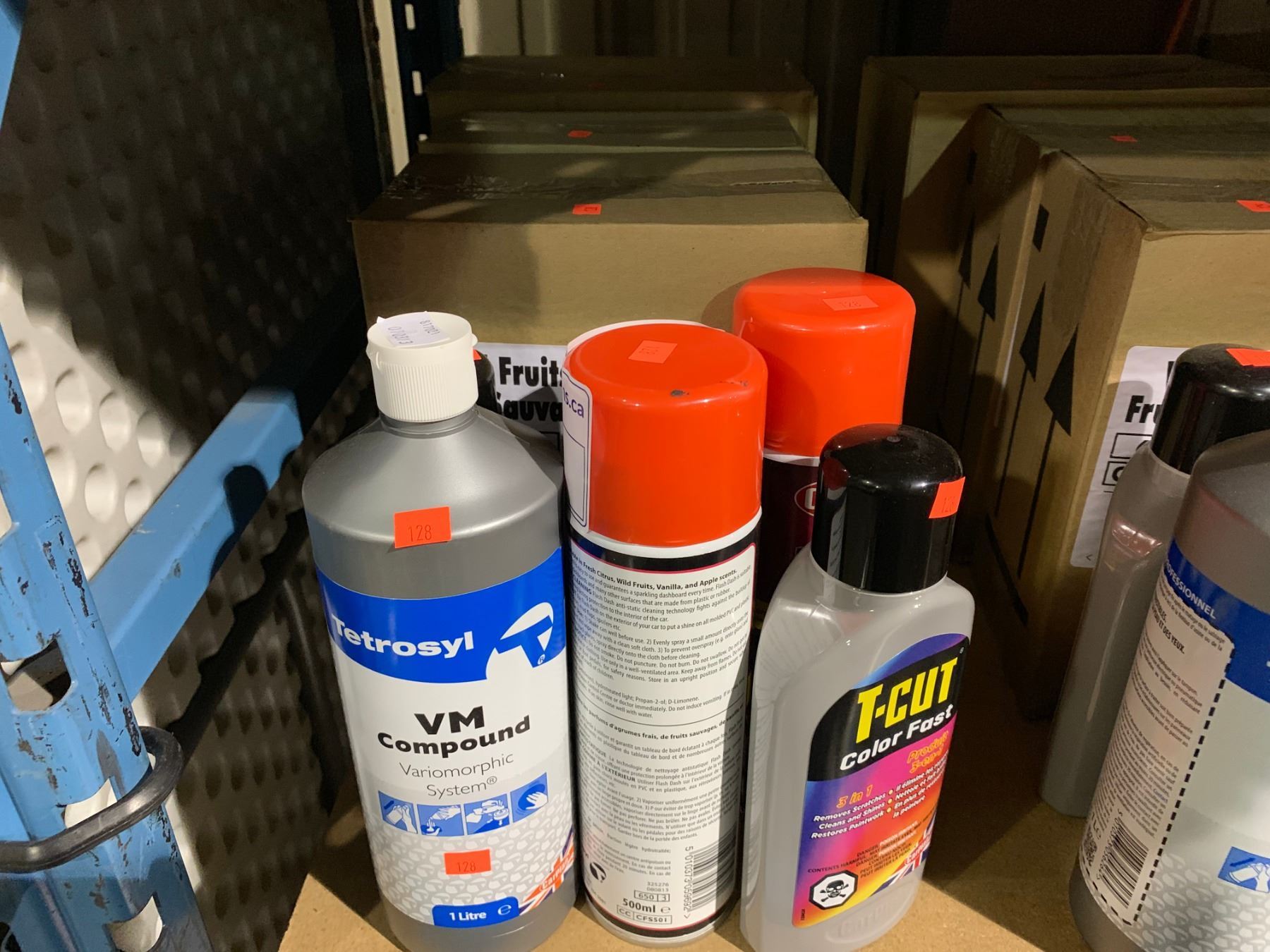 ASSORTED BOXES OF CARPLAN FLASH DASH CLEANER, T-CUT 3-IN-1 POLISH & TETROSYL VW COMPOUND