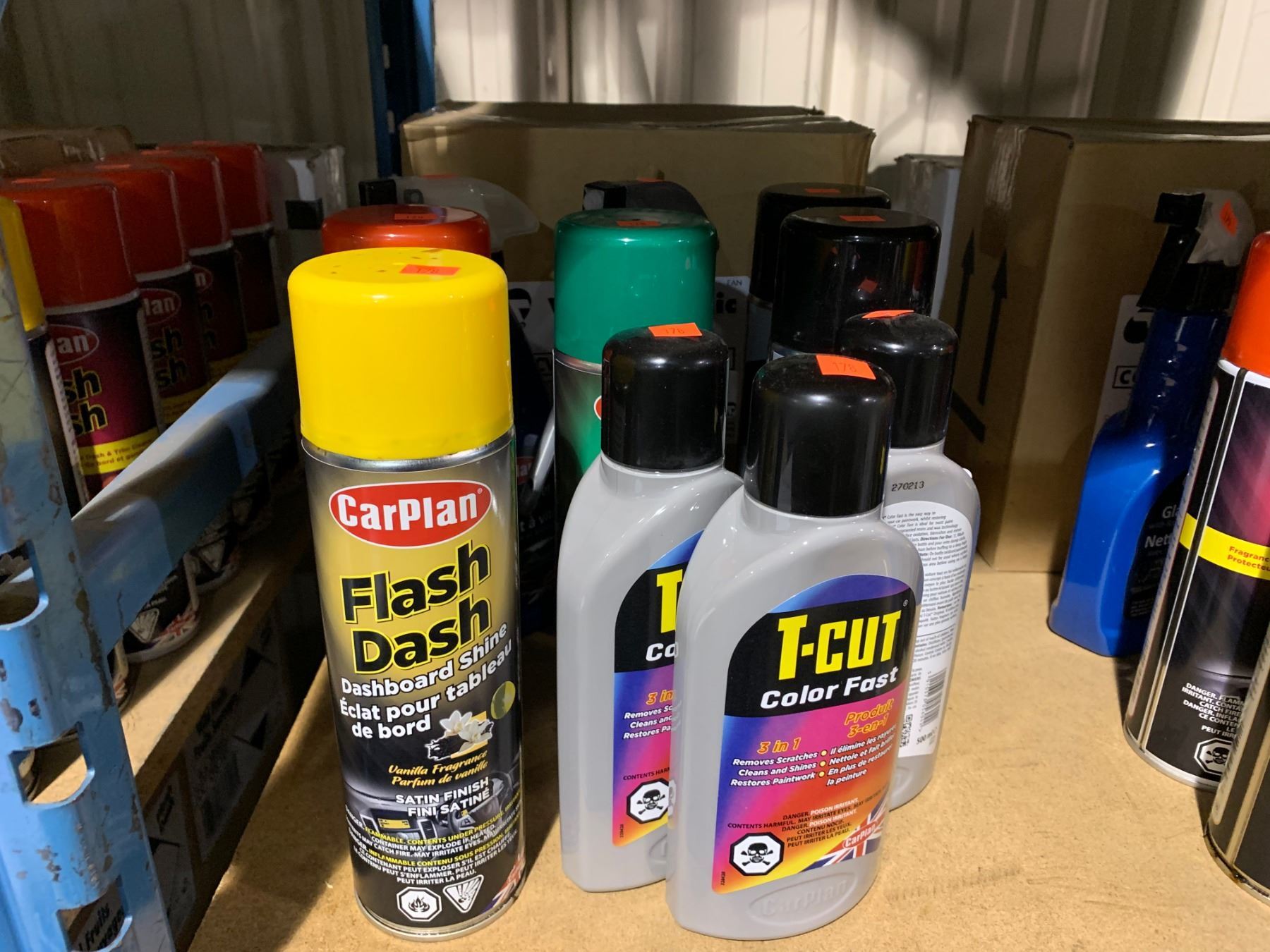 ASSORTED BOXES OF CARPLAN FLASH DASH CLEANER, T-CUT 3-IN-1 POLISH & VARIOUS AUTOMOTIVE CLEANING PRODUCTS