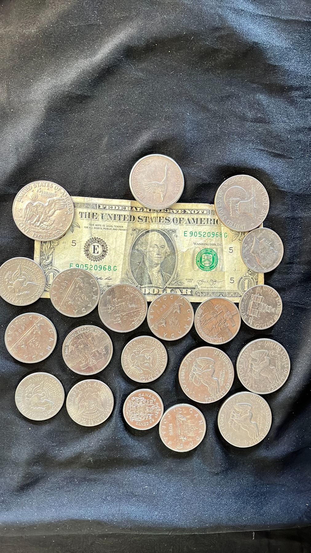 ASSORTED CANADIAN DOLLAR COINS (ONE SILVER) & AMERICAN DOLLAR COINS