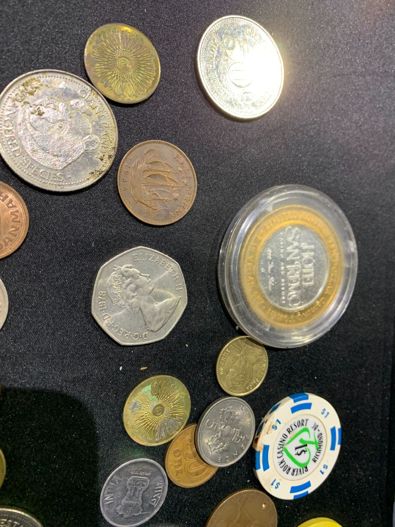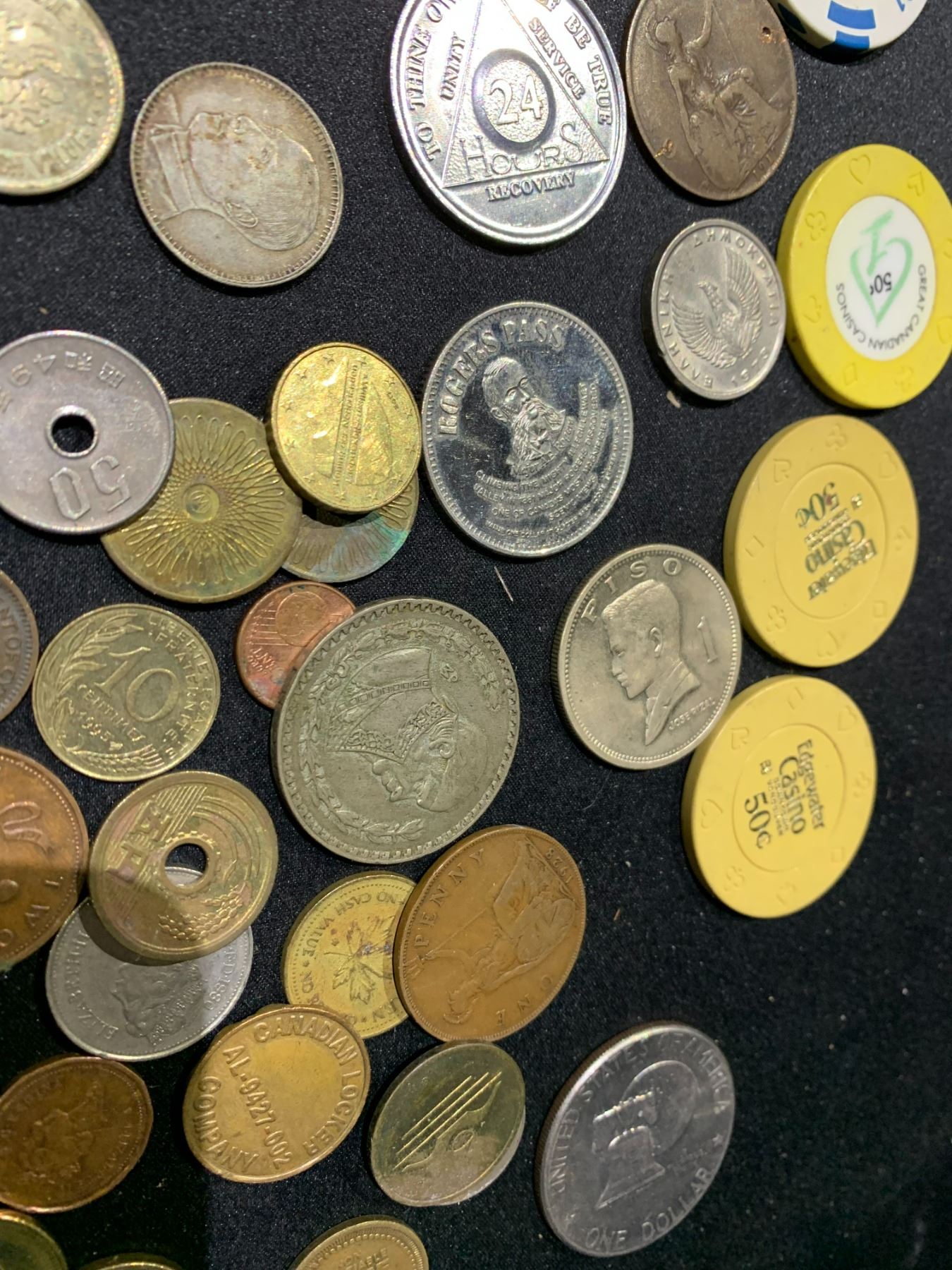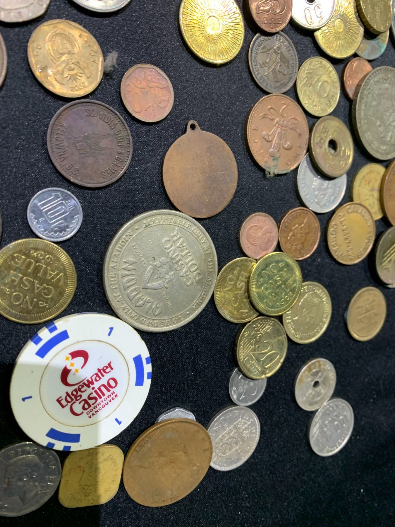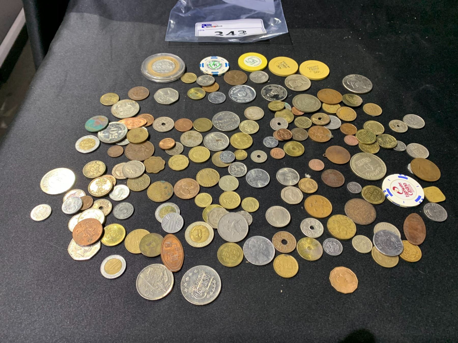 ASSORTED CASINO TOKENS, WORLD COINS: JAPAN, ENGLAND, AND MORE