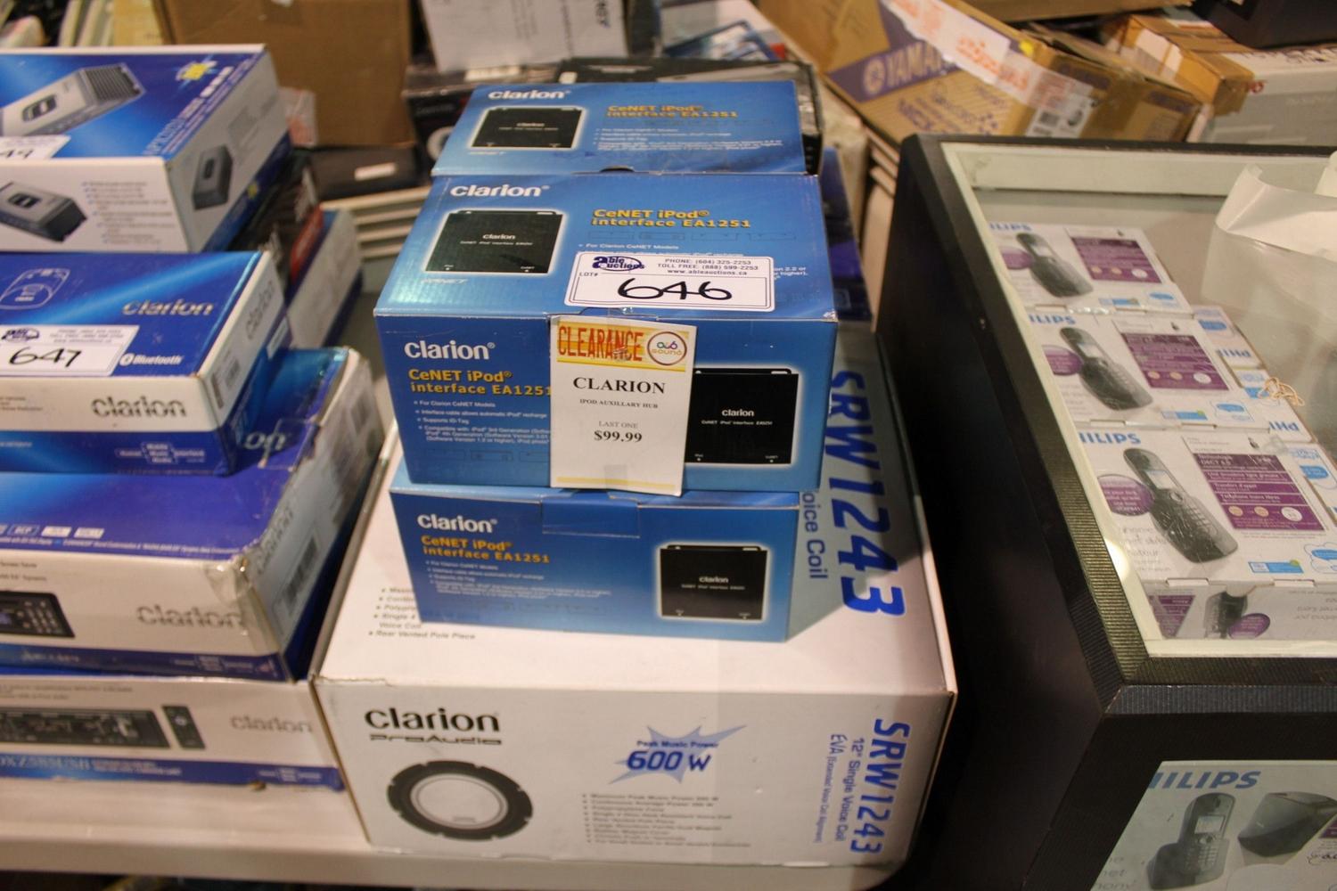 ASSORTED CLARION CAR STEREO SPEAKERS & INTERFACE UNITS