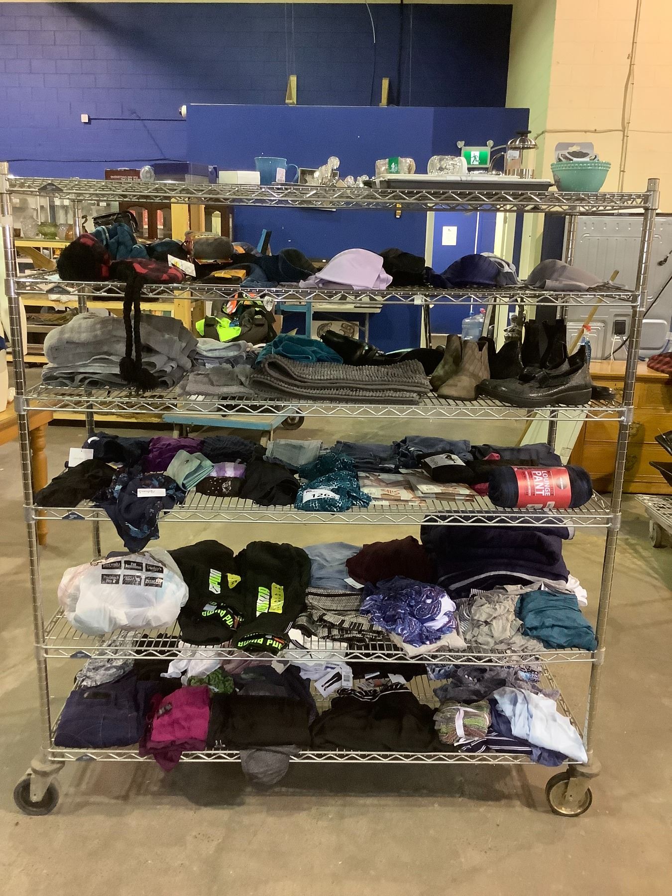 ASSORTED CLOTHING (MANY NEW WITH TAGS) & STORE GOODS (RACK NOT INCLUDED)