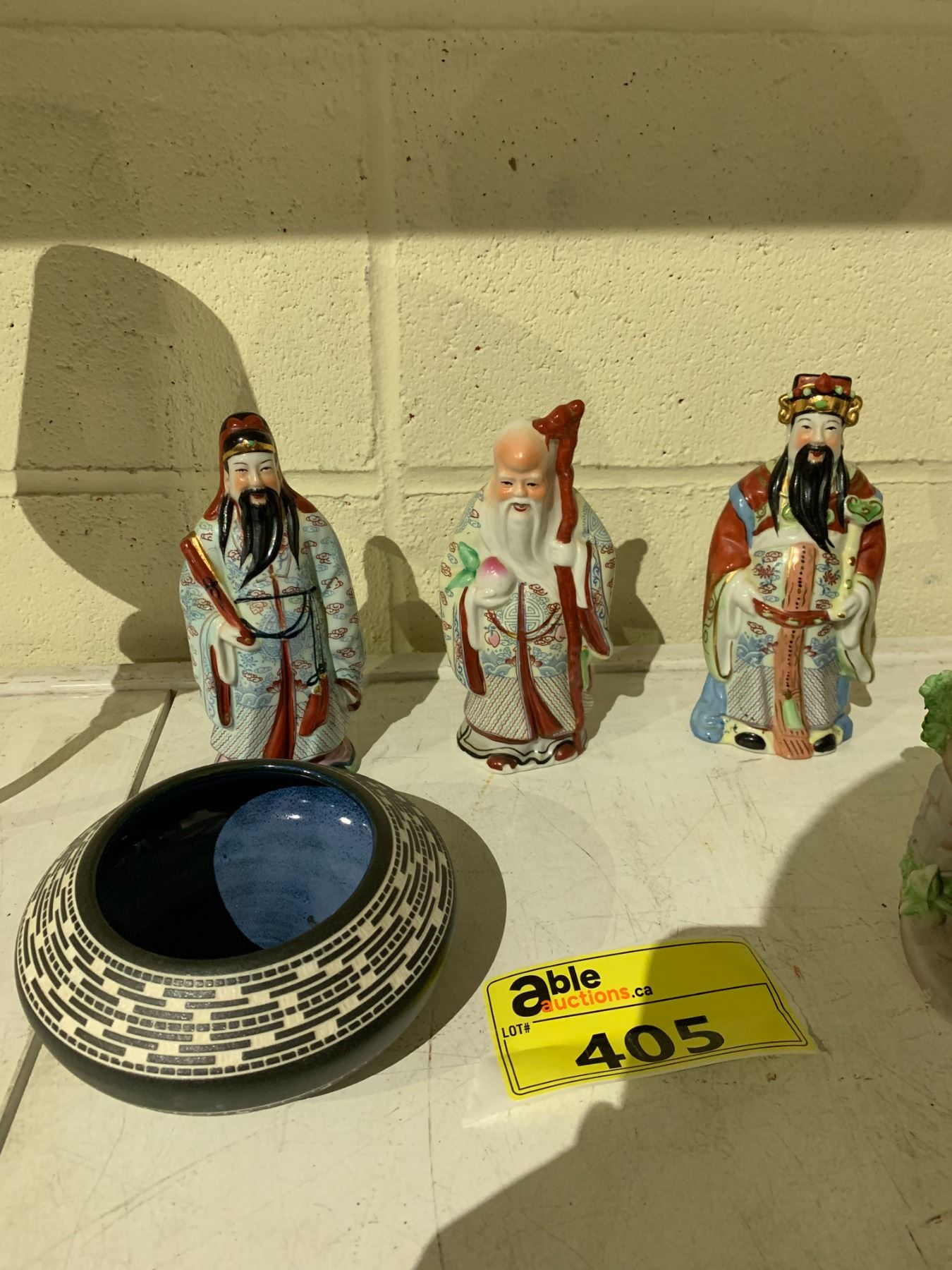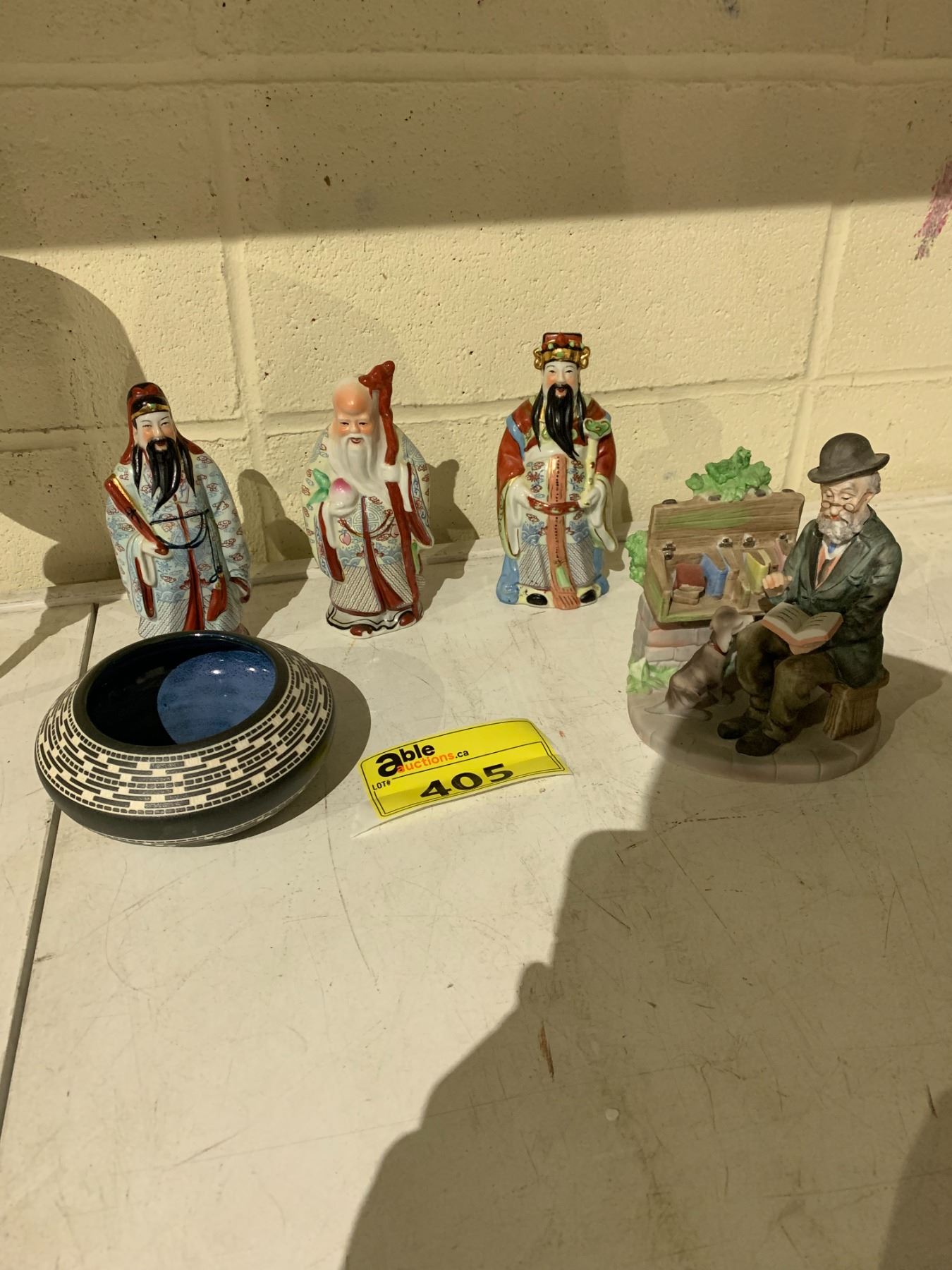 ASSORTED COLLECTIBLES INCLUDING; LEFFON FIGURE 2432, ARTIST SIGNED POT & 3 CHINESE FIGURES