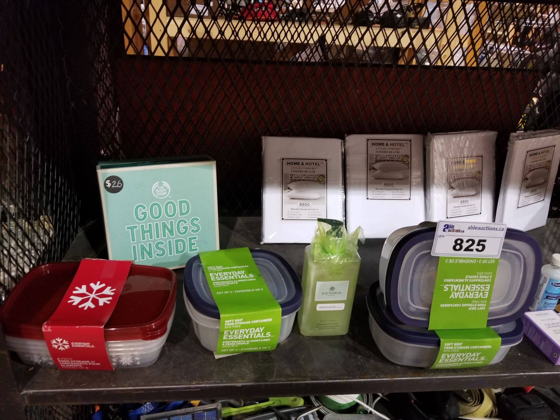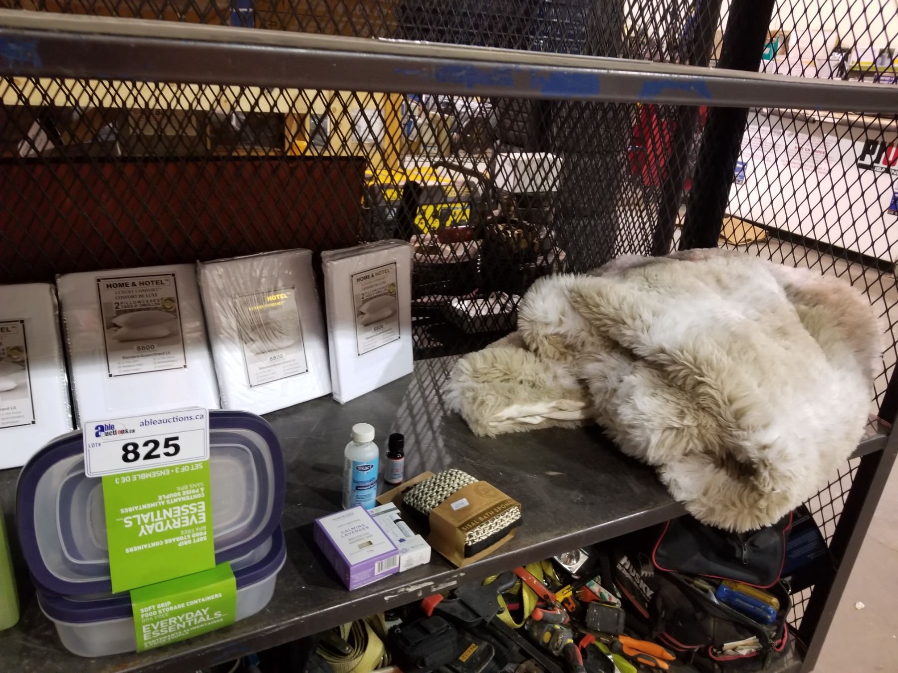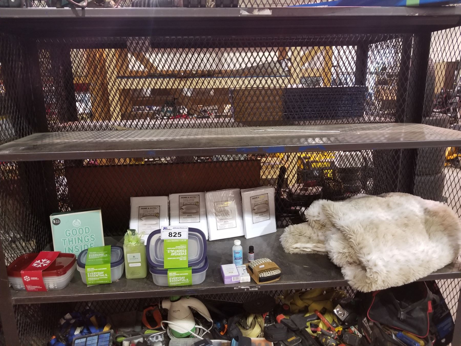 ASSORTED CONTAINERS, BATHROOM ITEMS, BLANKET & MORE