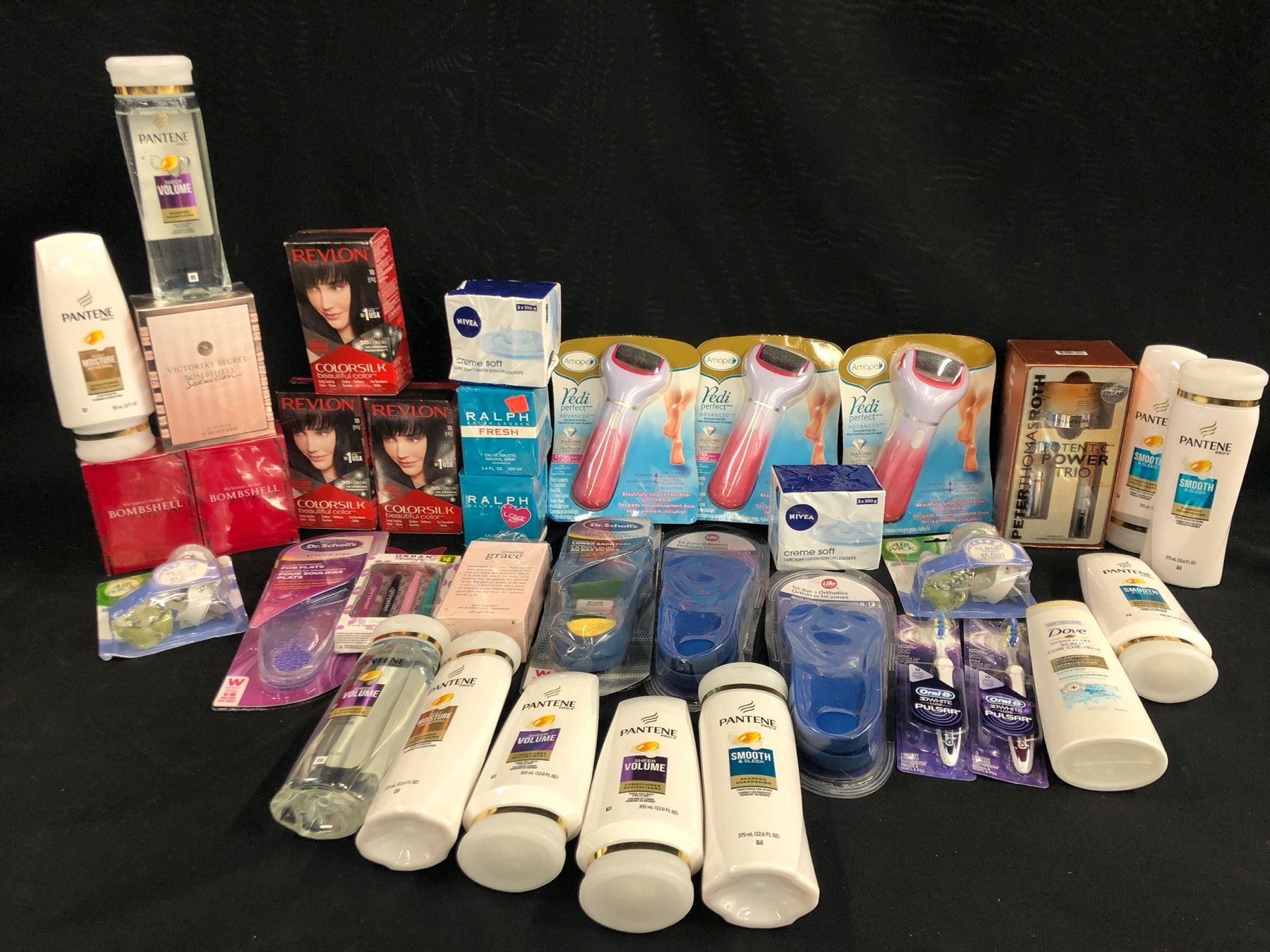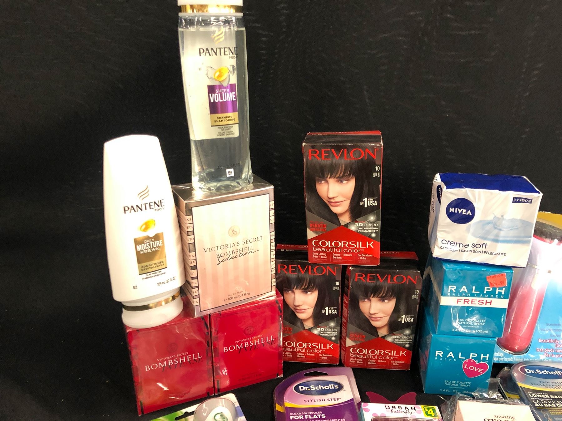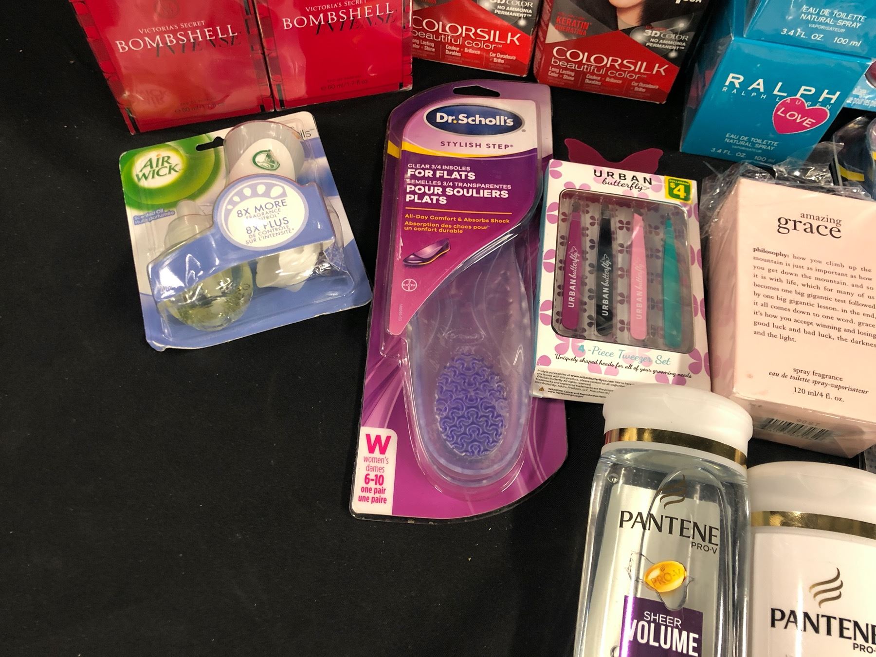 ASSORTED COSMETICS AND BEAUTY PRODUCTS INC. SHAMPOO, CONDITIONER, HAIR DYE, PERFUMES, AIR FRESHENERS, INSOLES, FOOT SMOOTHER AND MORE