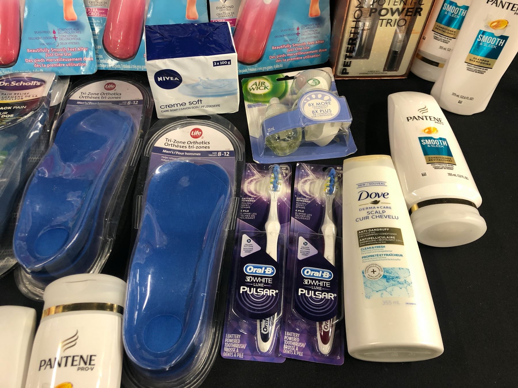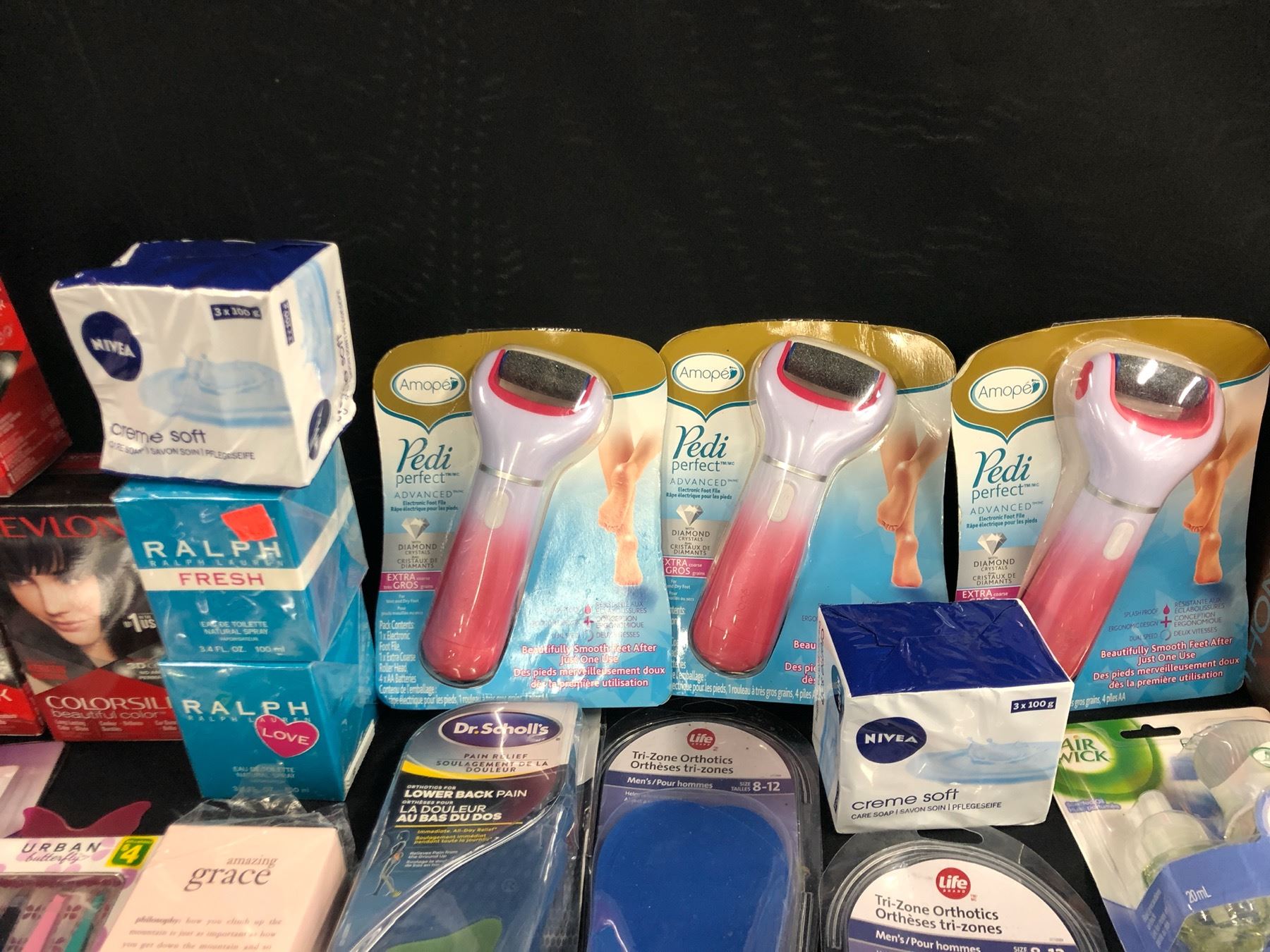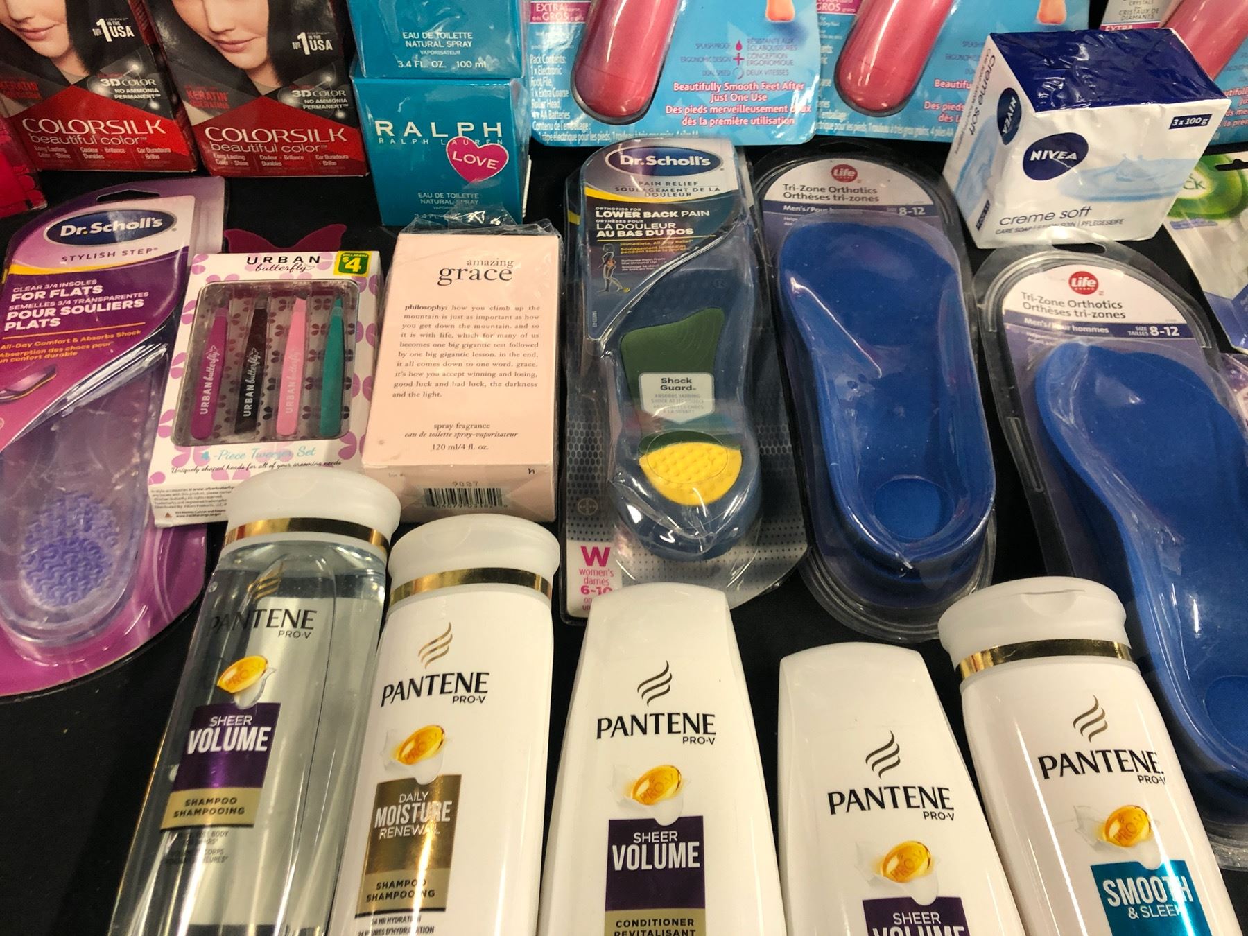 ASSORTED COSMETICS AND BEAUTY PRODUCTS INC. SHAMPOO, CONDITIONER, HAIR DYE, PERFUMES, AIR FRESHENERS, INSOLES, FOOT SMOOTHER AND MORE