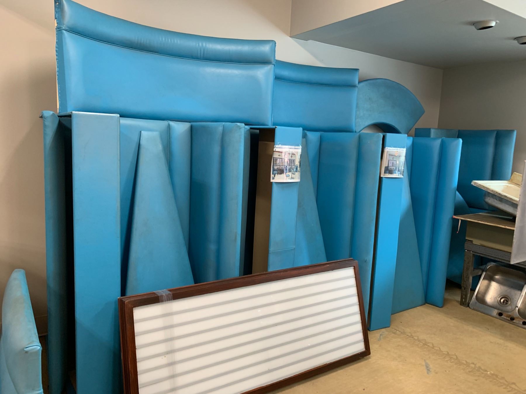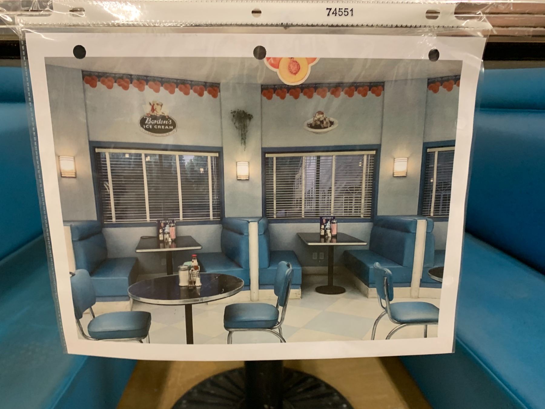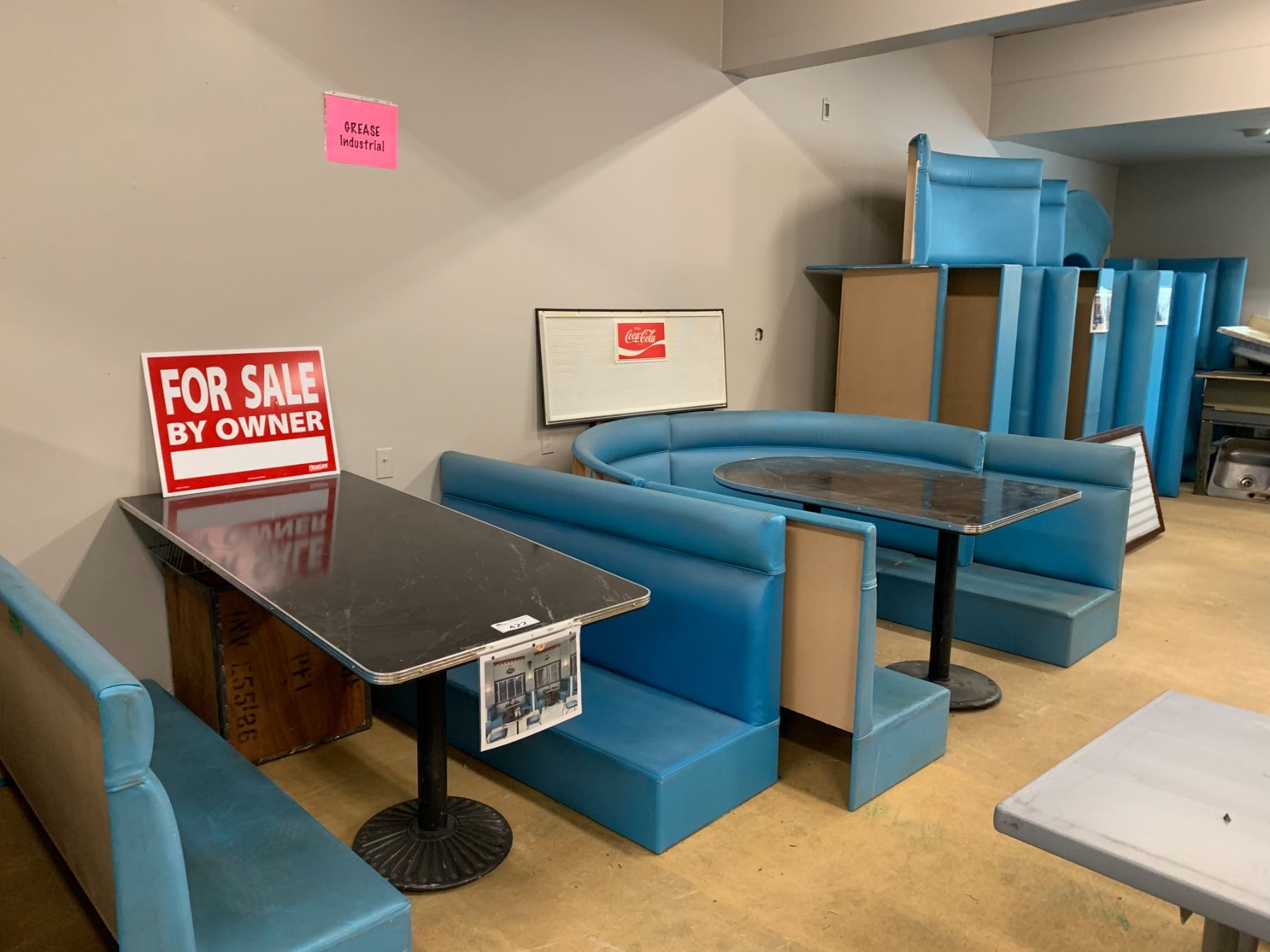ASSORTED DINER FURNITURE INCLUDING; BOOTH SEATS, TABLES & LIGHT BOX (MUST TAKE ALL)