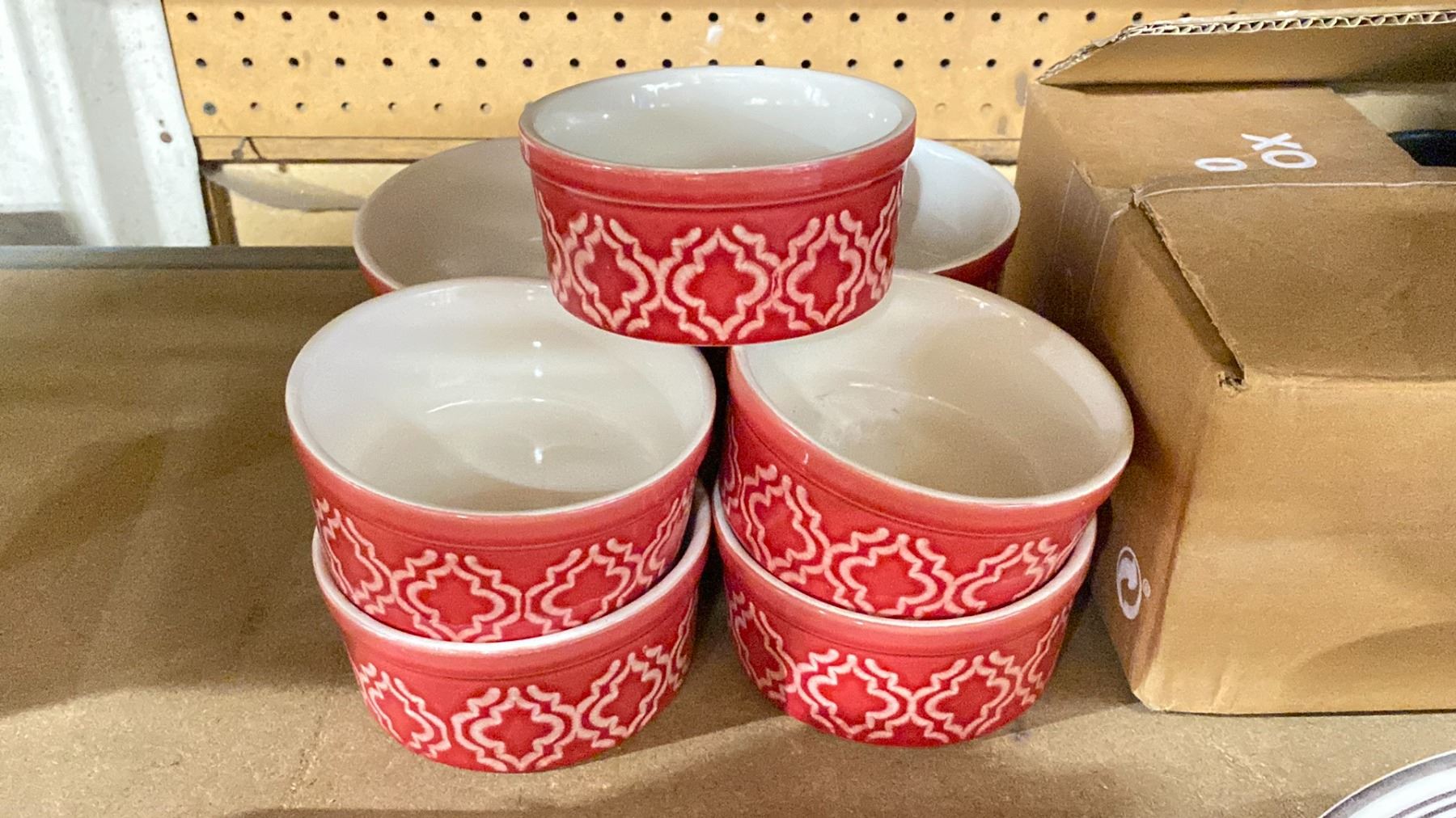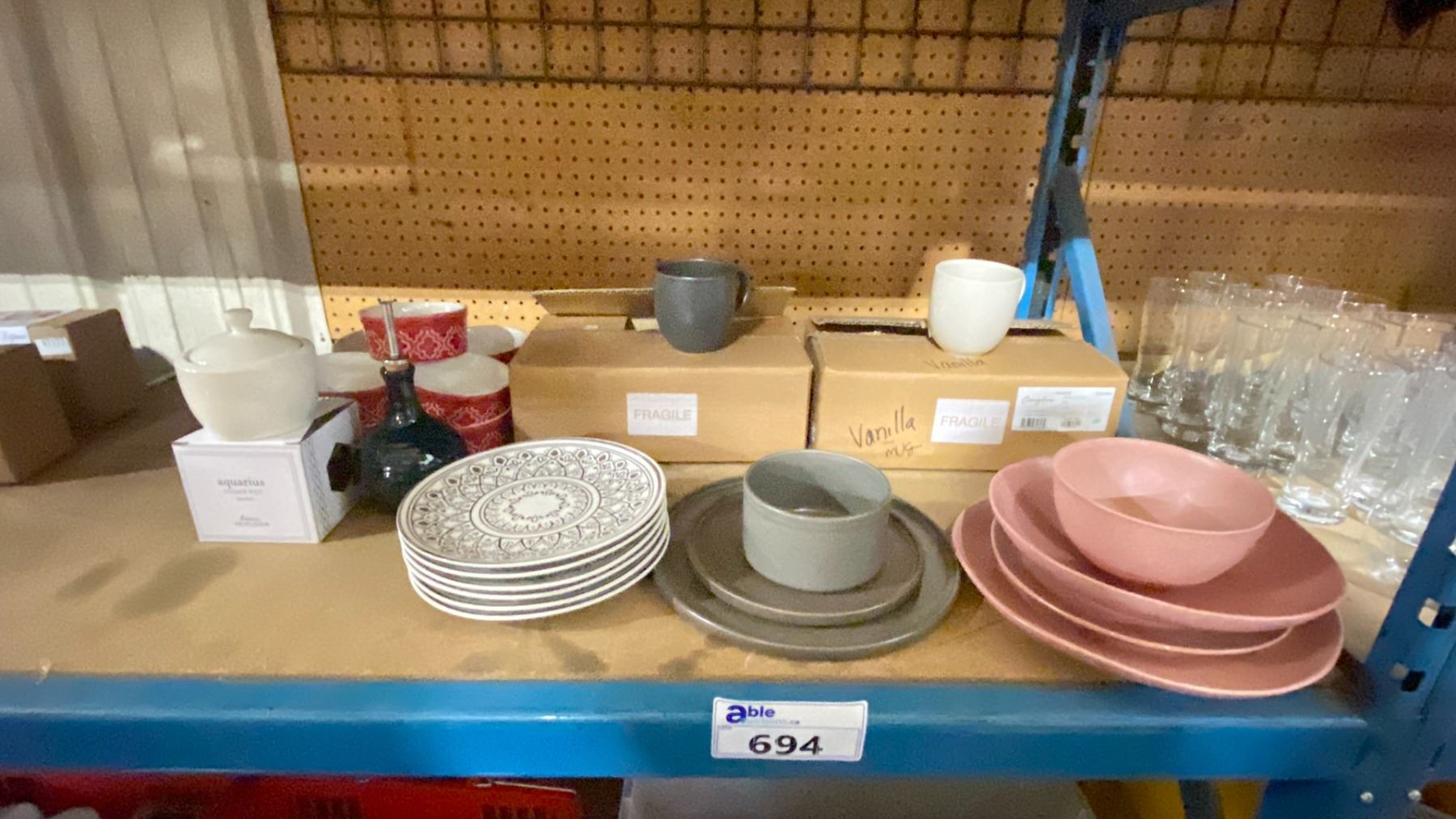 ASSORTED DISHES, SETS OF MUGS, SUGAR POT, VINEGAR CRUET & RAMEKINS
