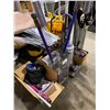 ASSORTED DYSON UPRIGHT VACUUM, STICK VACUUMS, ATTACHMENTS & DEWALT MOBILE SHOP VACUUM WITH HOSE