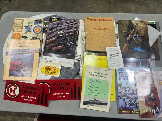 ASSORTED FIREARM AND RELATED GOODS. CATALOGUES AND BROCHURES, MOSTLY 1970, 1980 & 1990. WINDOW STICKERS.