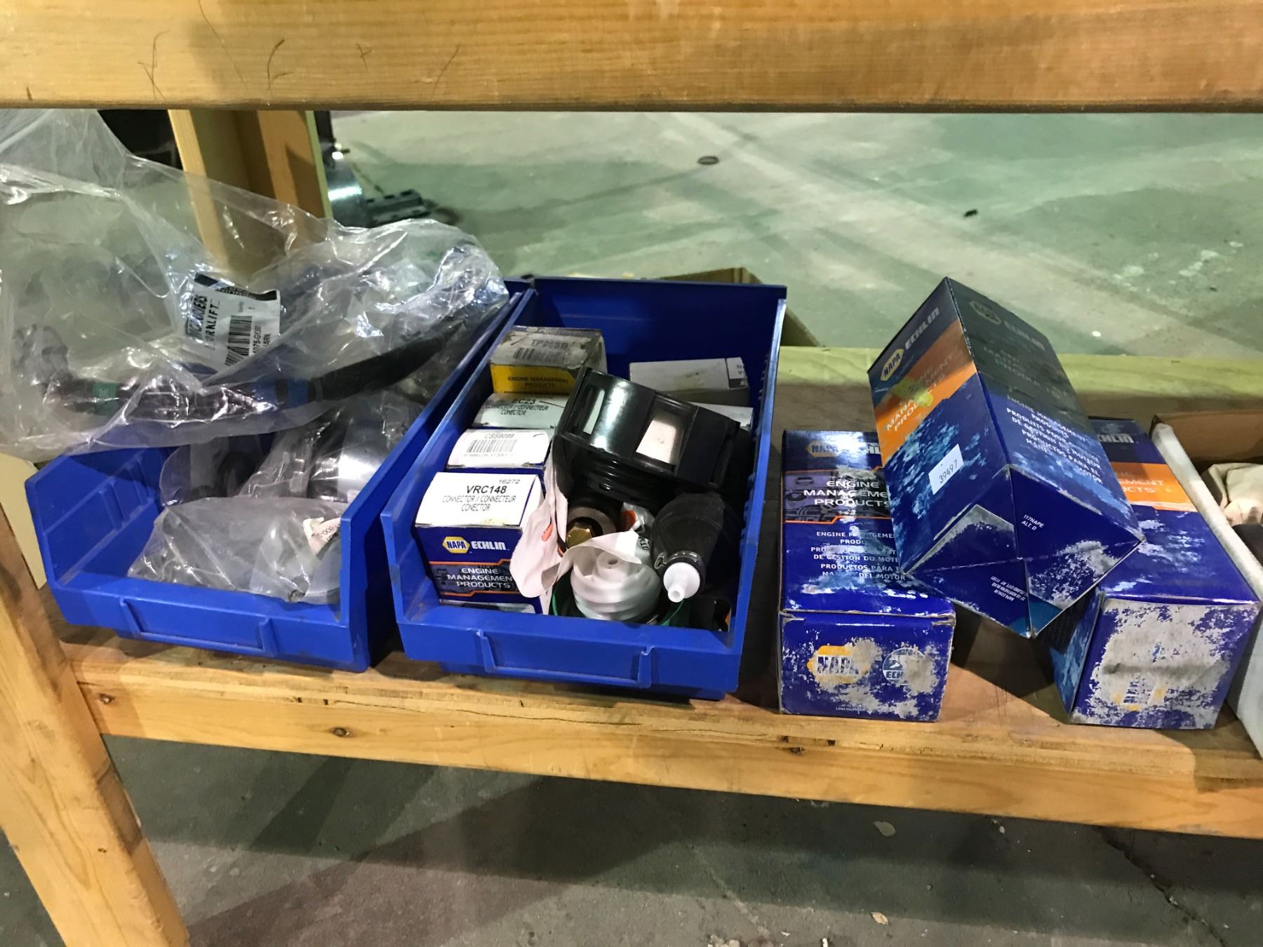 ASSORTED FORKLIFT PARTS & PIECES SUCH AS: CONTROL STICK, NAPA CONNECTORS, CYLINDER WHEEL, & MORE