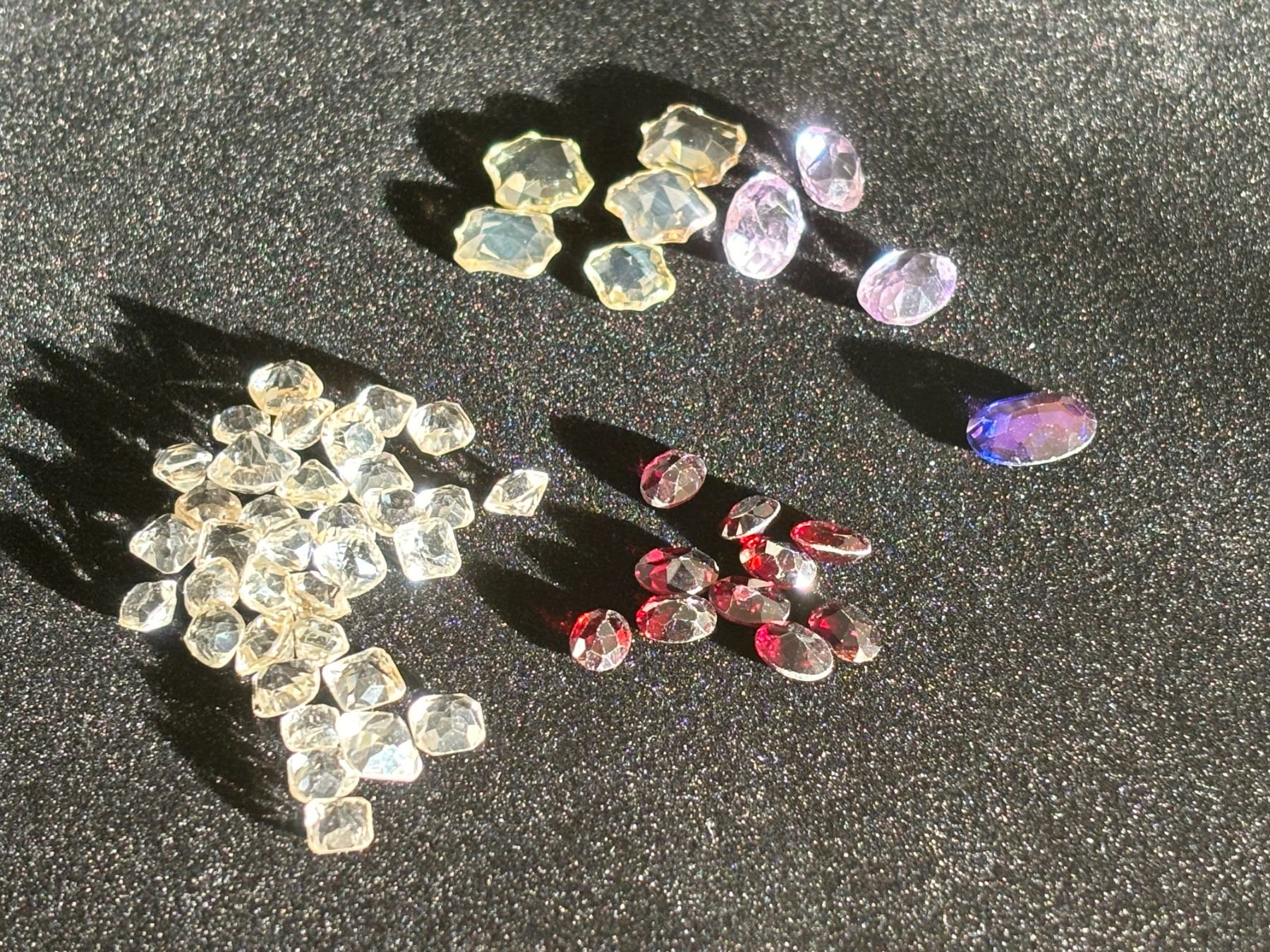 ASSORTED GEMS INCLUDING; 4 AMETHYSTS, ASSORTED CITRINE,& 10 GARNET. VARIOUS SIZES AND SHAPES