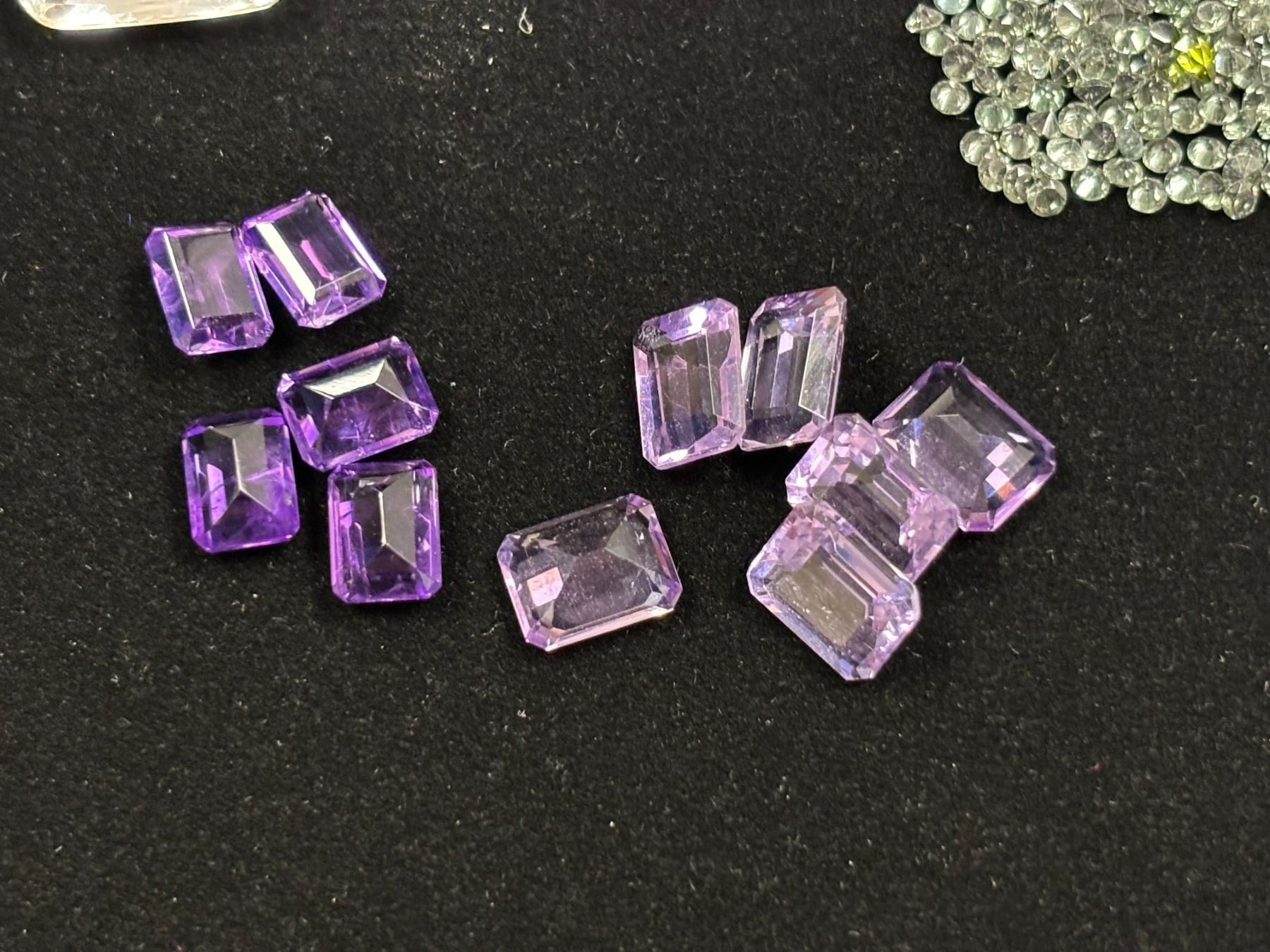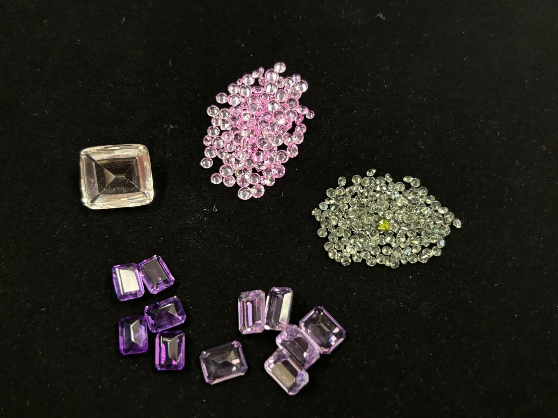 ASSORTED GEMS INCLUDING; GREEN SPINEL, 11 AMETHYSTS, 1 CITRINE, & PINK SAPPHIRE.