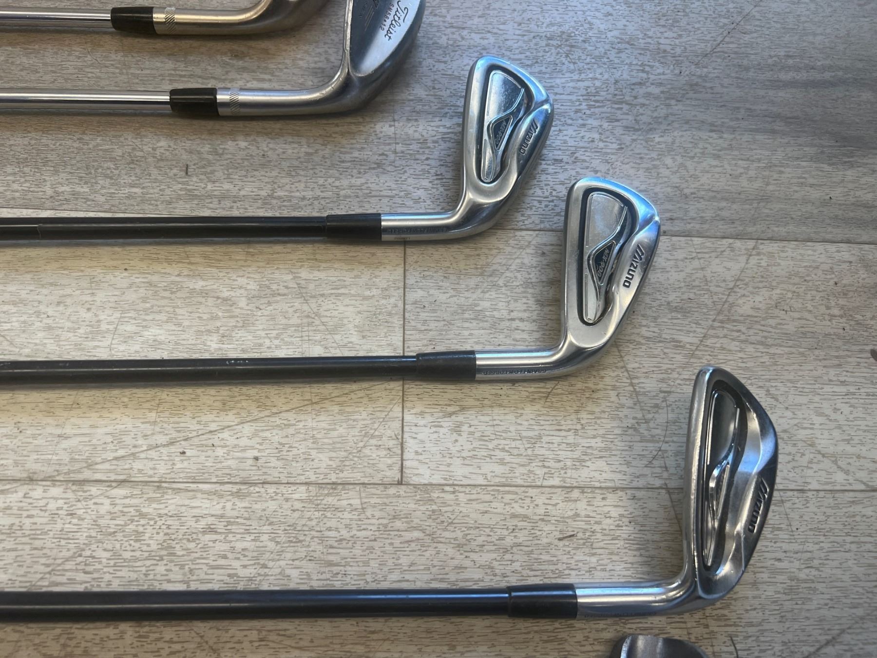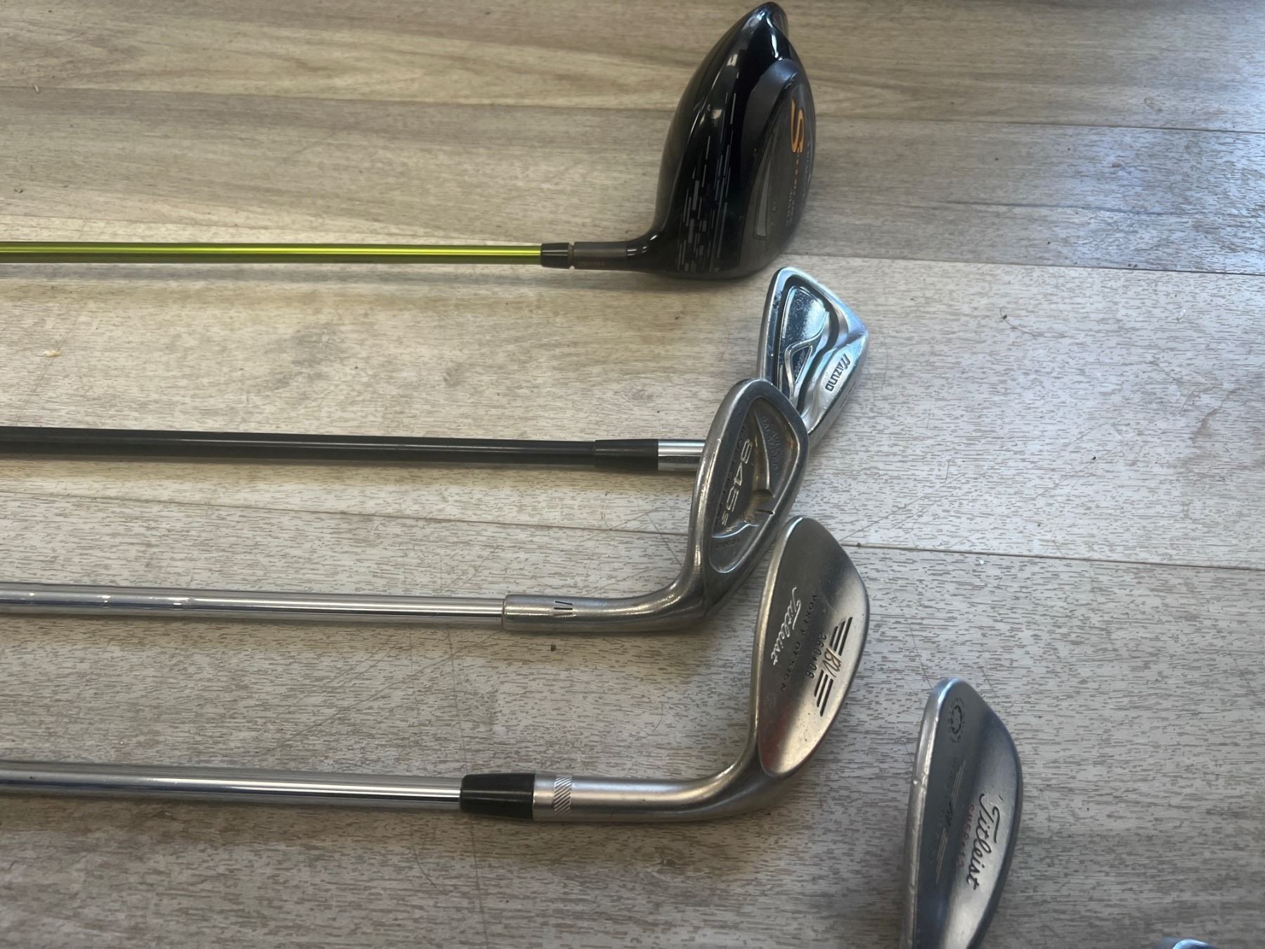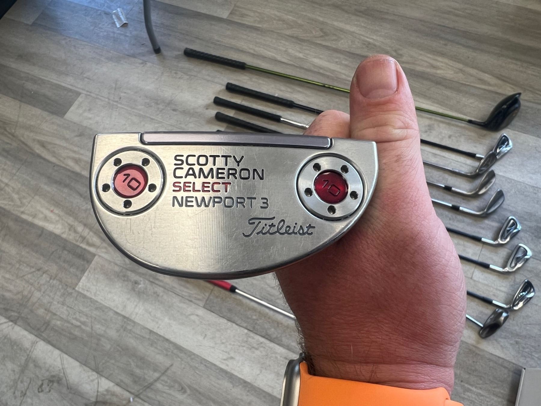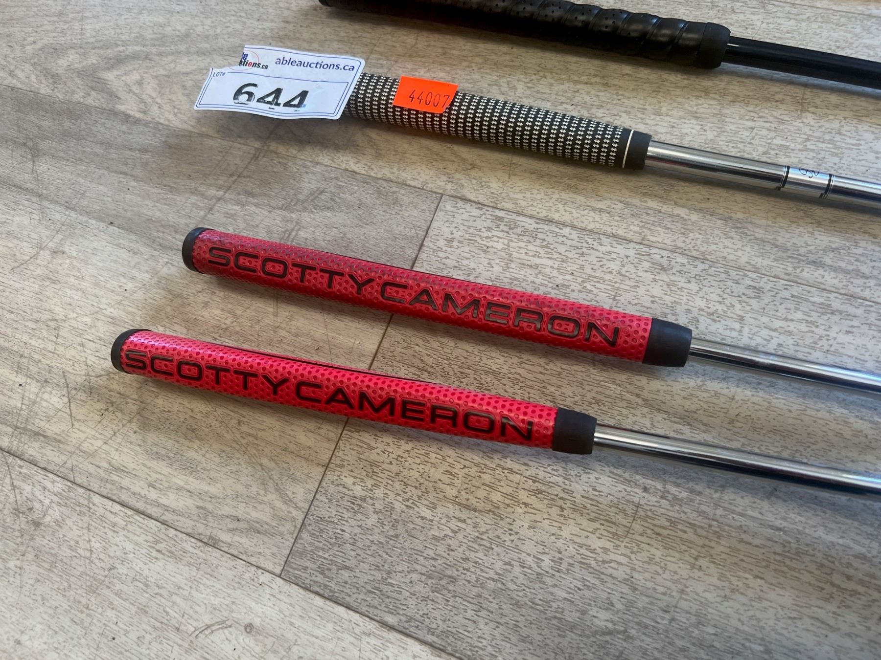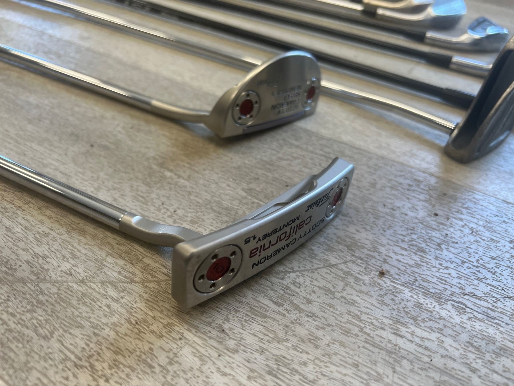 ASSORTED GOLF CLUBS; 2 SCOTTY CAMERON PUTTERS, TITLEIST, ADAMS GOLF AND MORE
