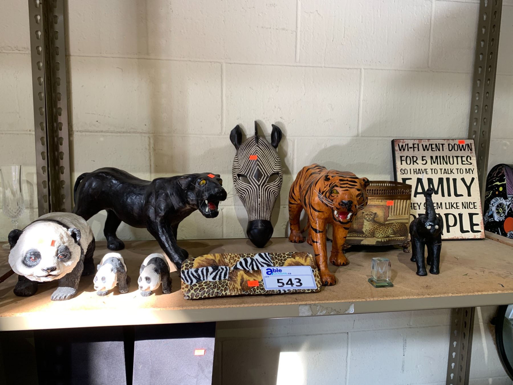 ASSORTED HOME DECOR INCLUDING; PANTHER, PANDAS, TIGER & MORE