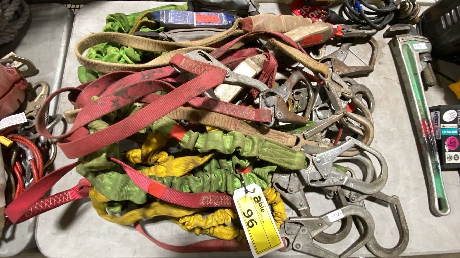 ASSORTED INDUSTRIAL RIGGING HARNESSES & BREAKAWAY FALL PROTECTION STRAPS