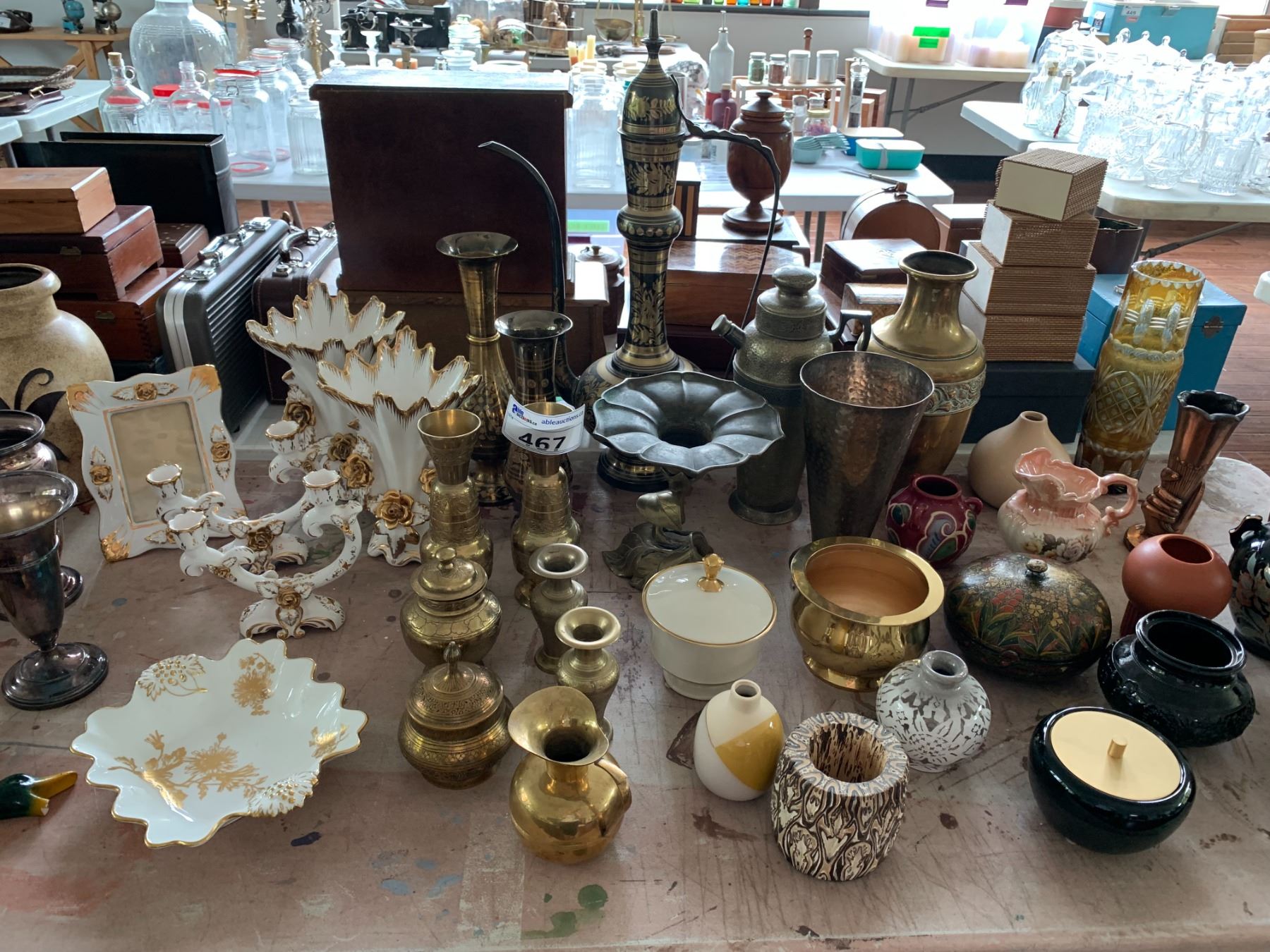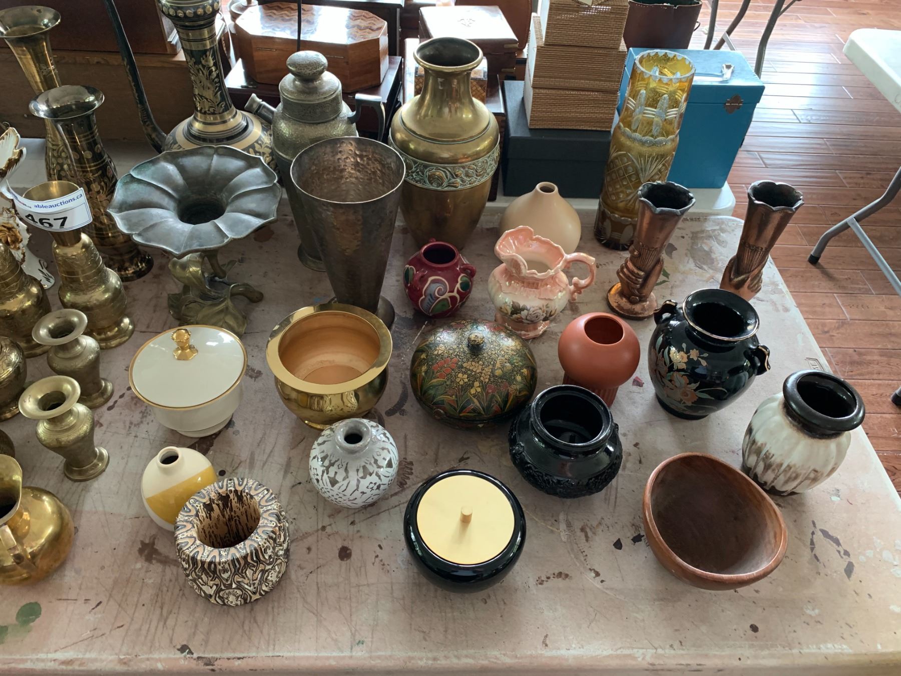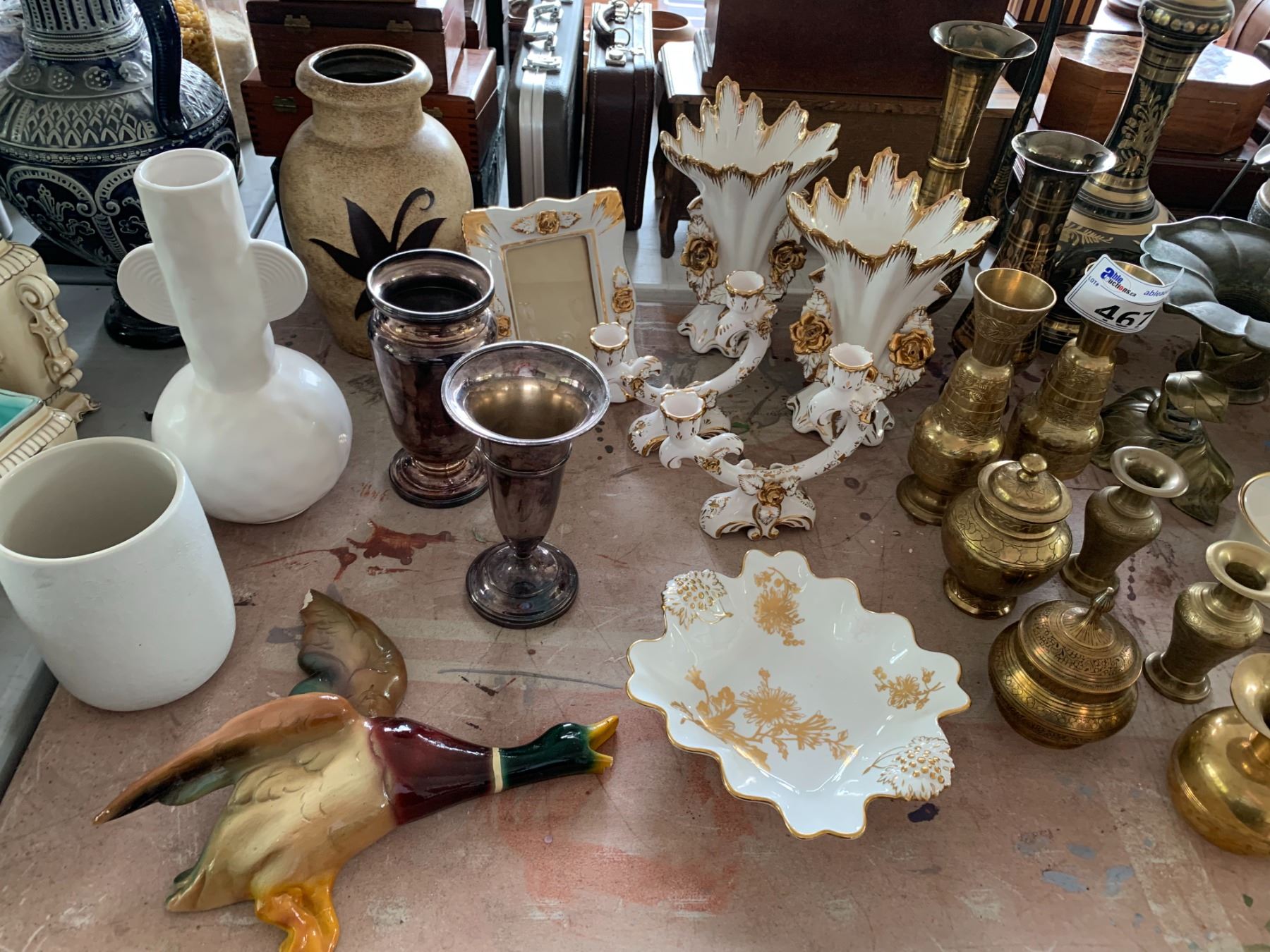 ASSORTED ITEMS INCLUDING; CANDLE HOLDERS, VASES, DUCK WALL DCOR & MORE (TABLE NOT INCLUDED)