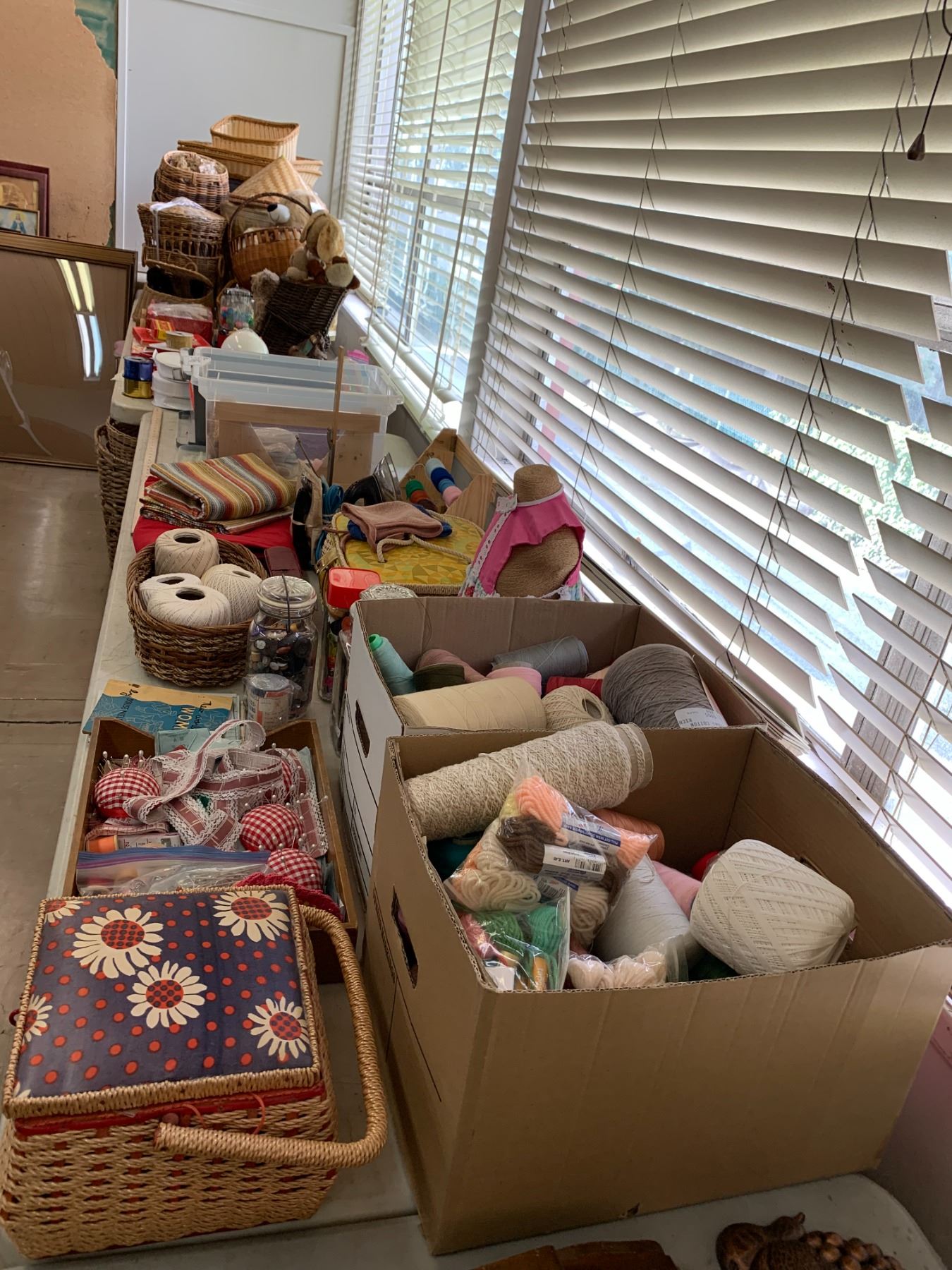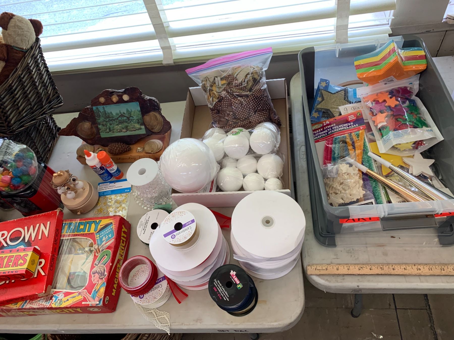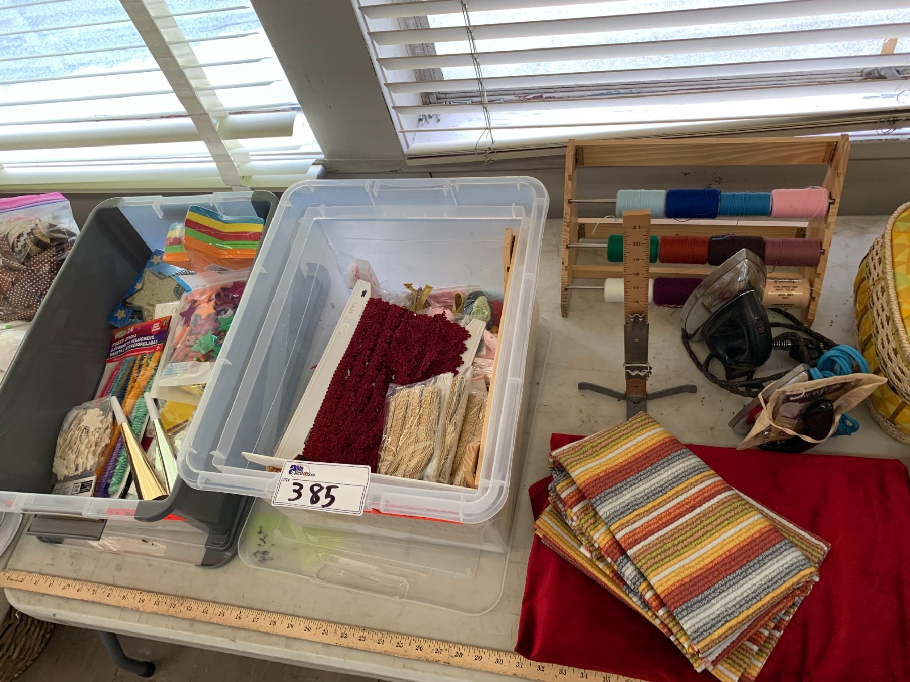 ASSORTED ITEMS INCLUDING; DESK TOP GUMBALL MACHINE, ASSORTED BASKETS, SEWING/KNITTING SUPPLIES, STUFFED ANIMALS & MORE (TABLES NOT INCLUDED)