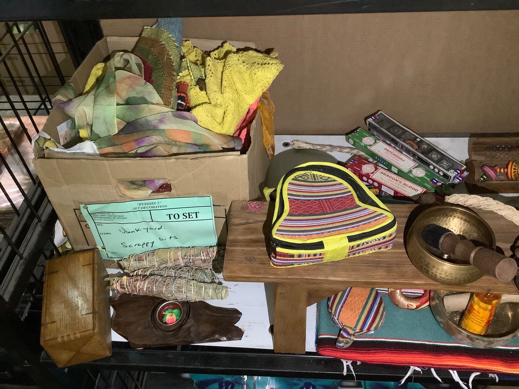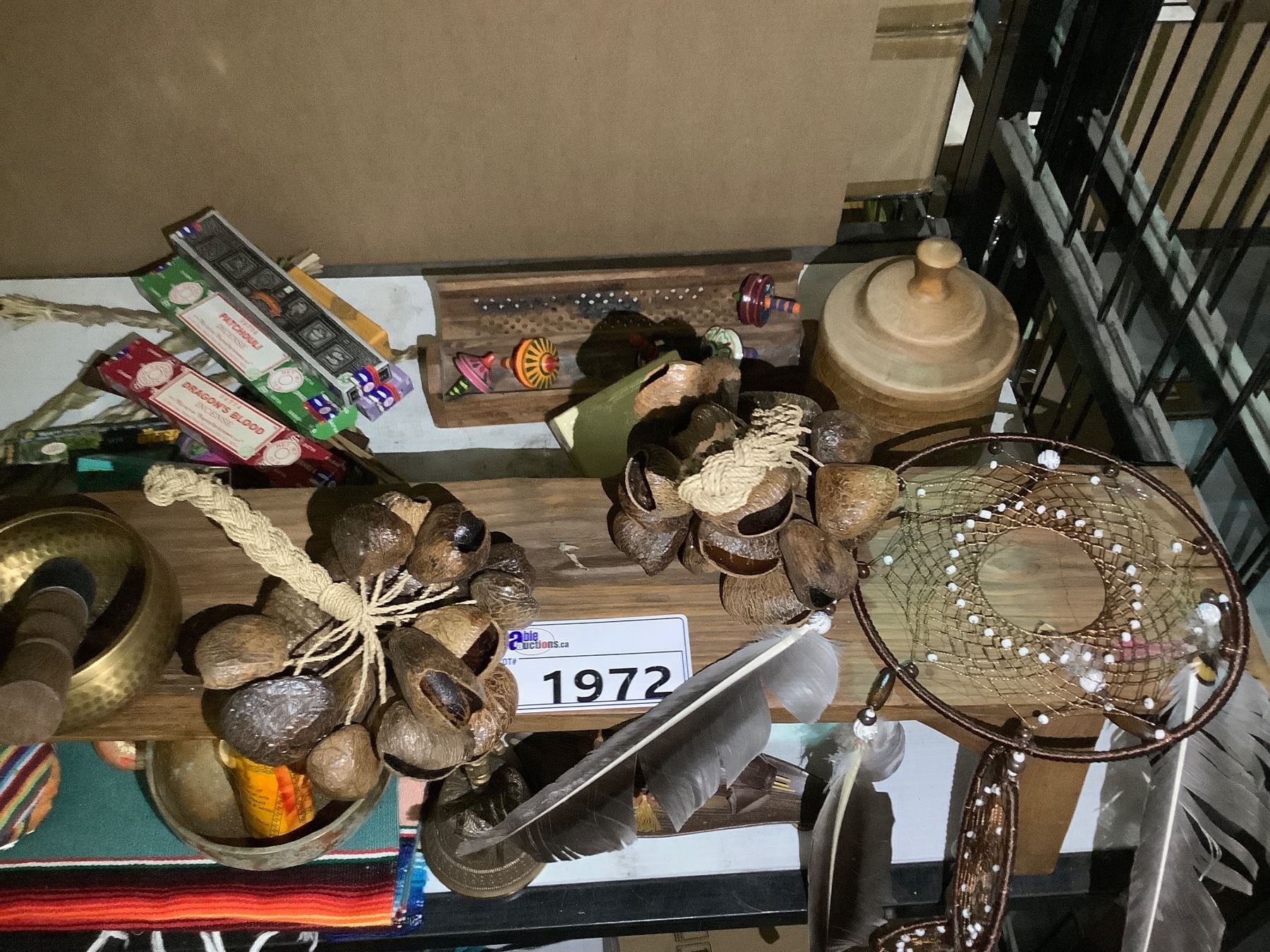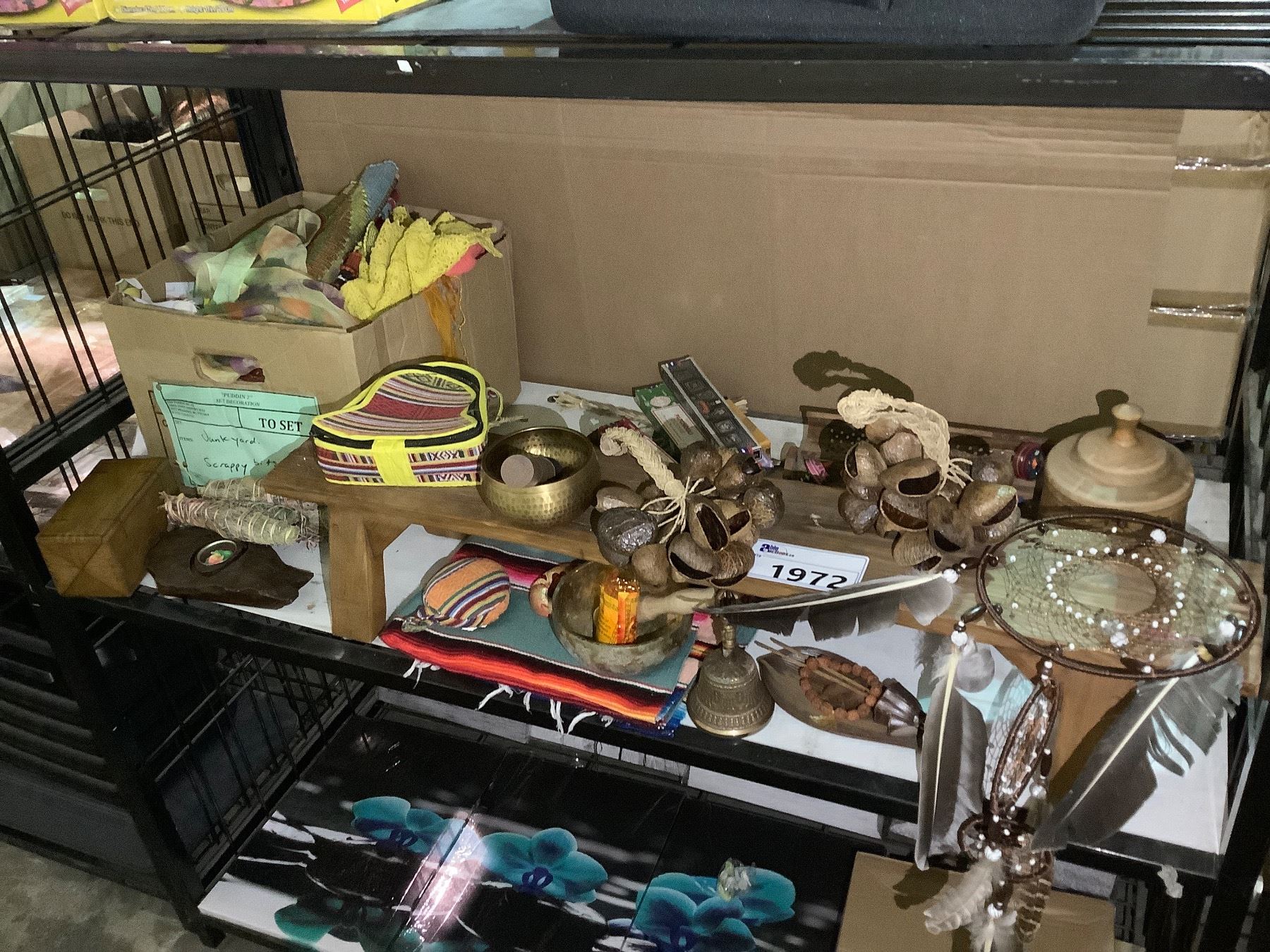 ASSORTED ITEMS INCLUDING; DREAMCATCHER, BELL, ASSORTED TOPS & MORE