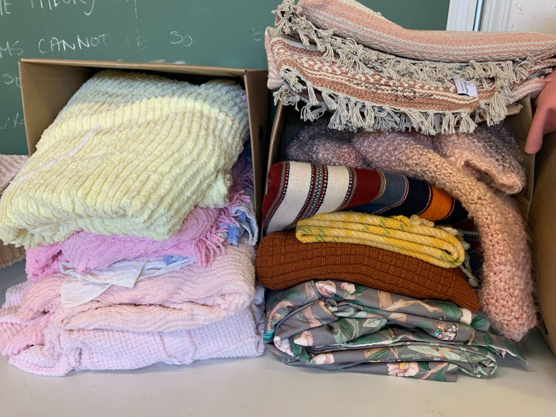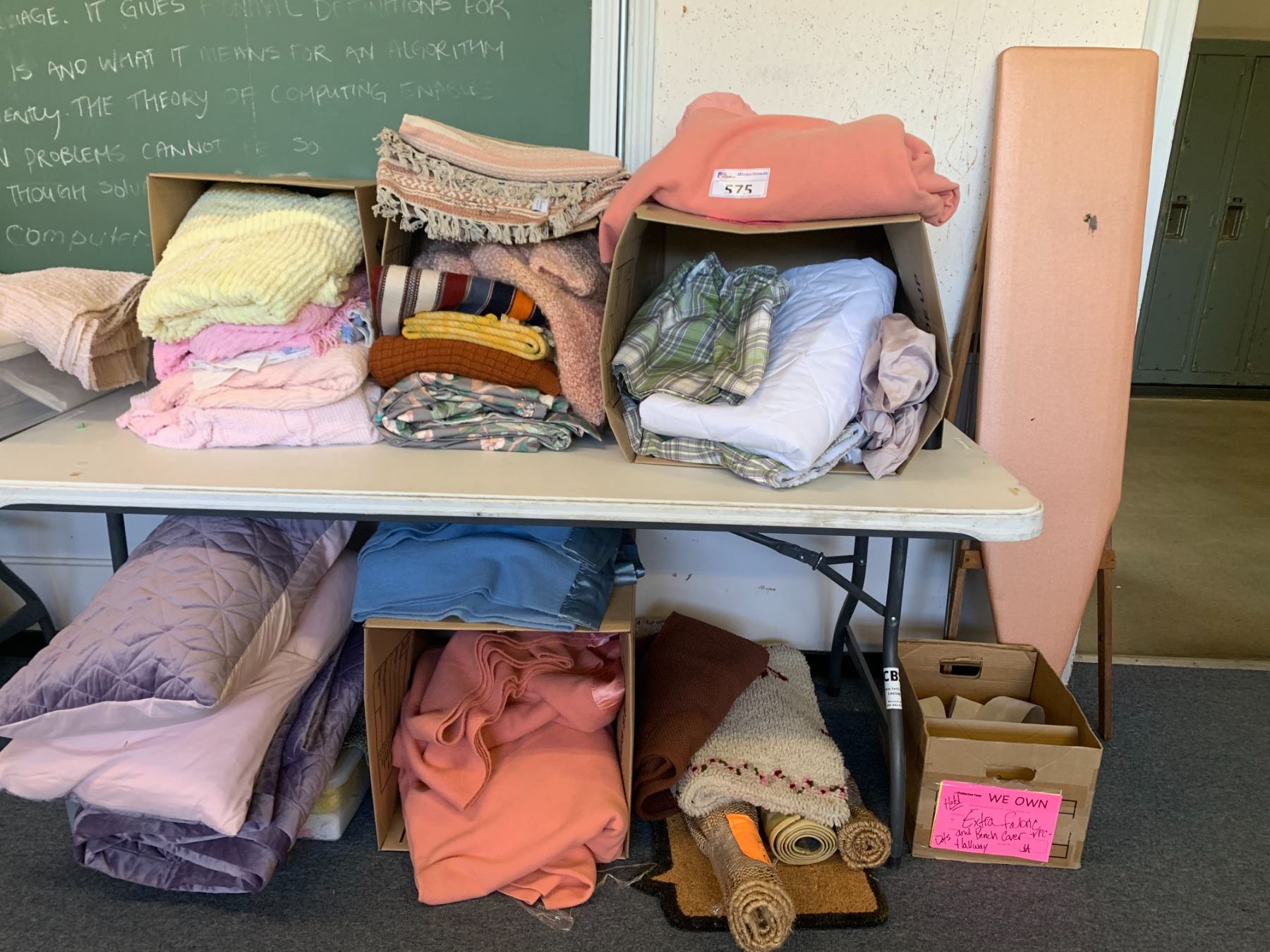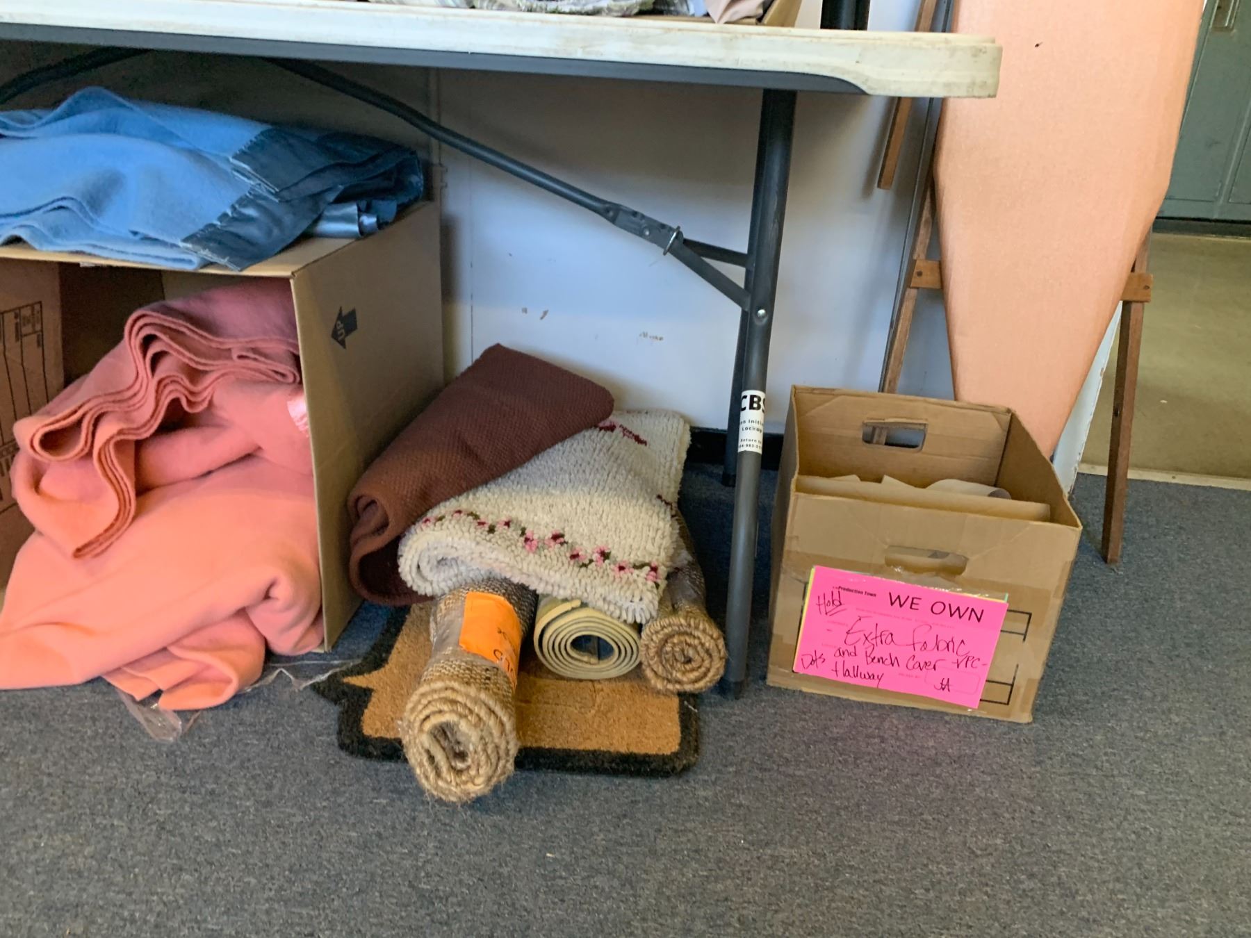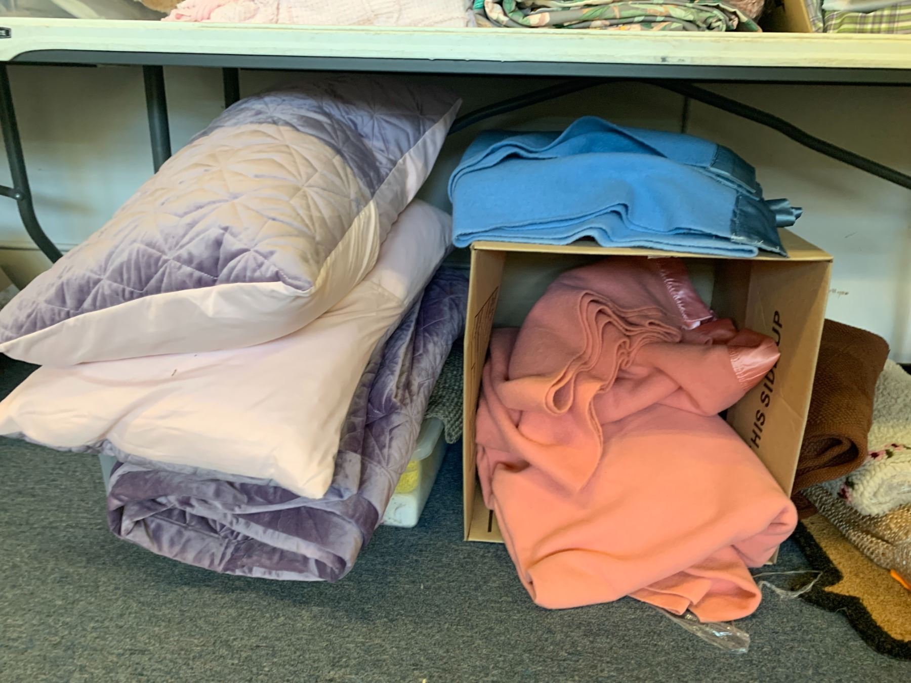 ASSORTED ITEMS INCLUDING; FLOOR MATS, PILLOWS, BLANKETS & MORE (TABLE NOT INCLUDED)