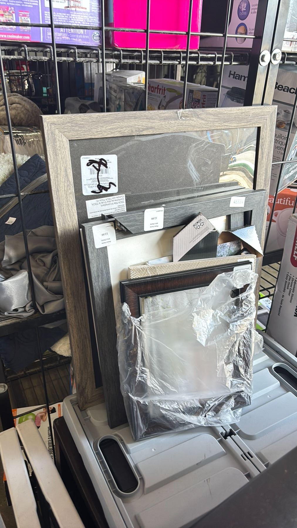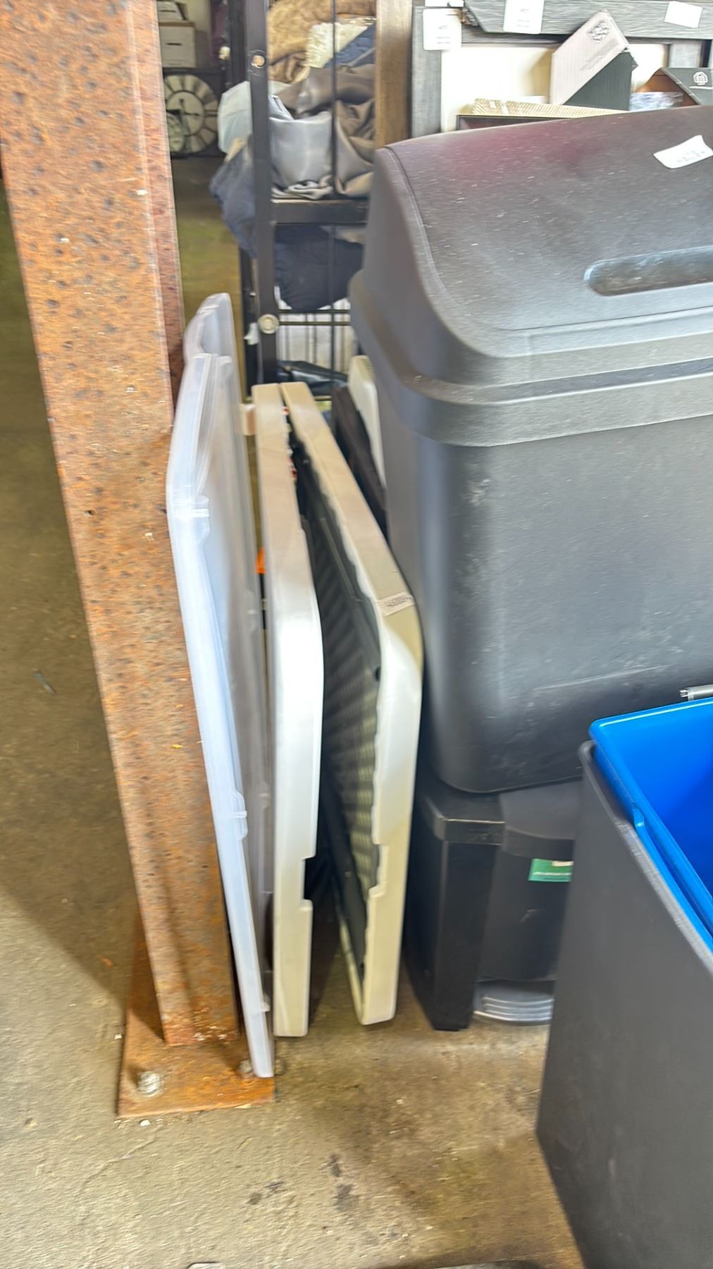 ASSORTED ITEMS INCLUDING; FOLDING TABLE, WASTE BINS, PICTURE FRAMES & MORE