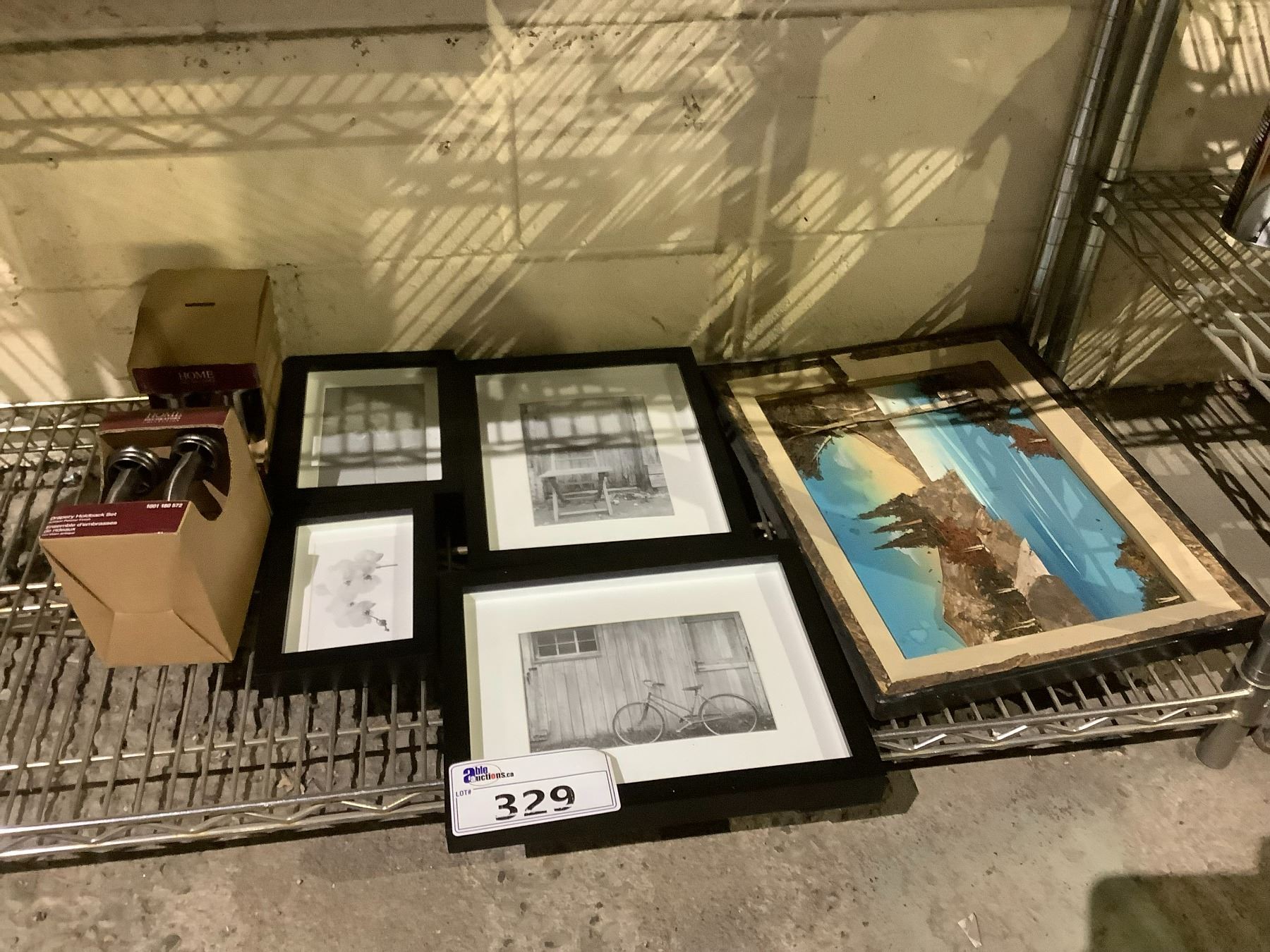 ASSORTED ITEMS INCLUDING; FRAMED ART, PICTURE FRAMES & 2 DRAPERY HOLDBACK SETS