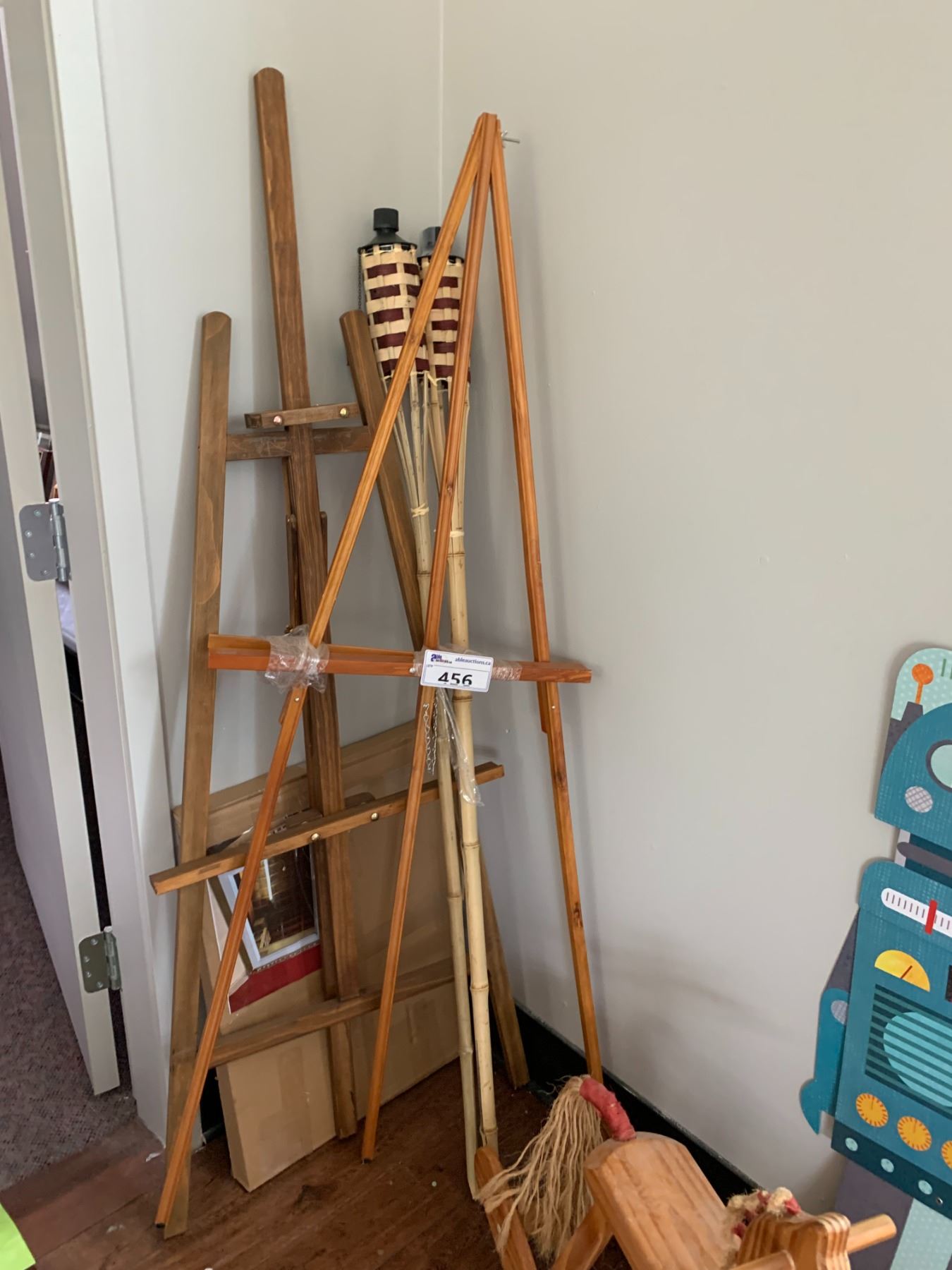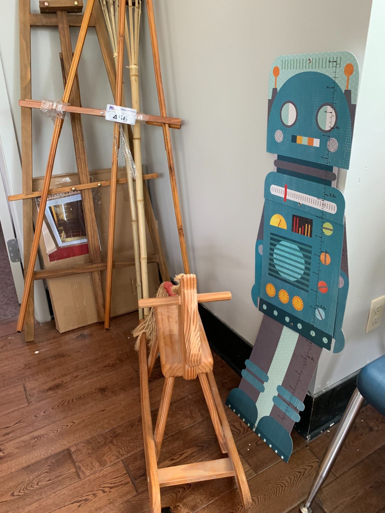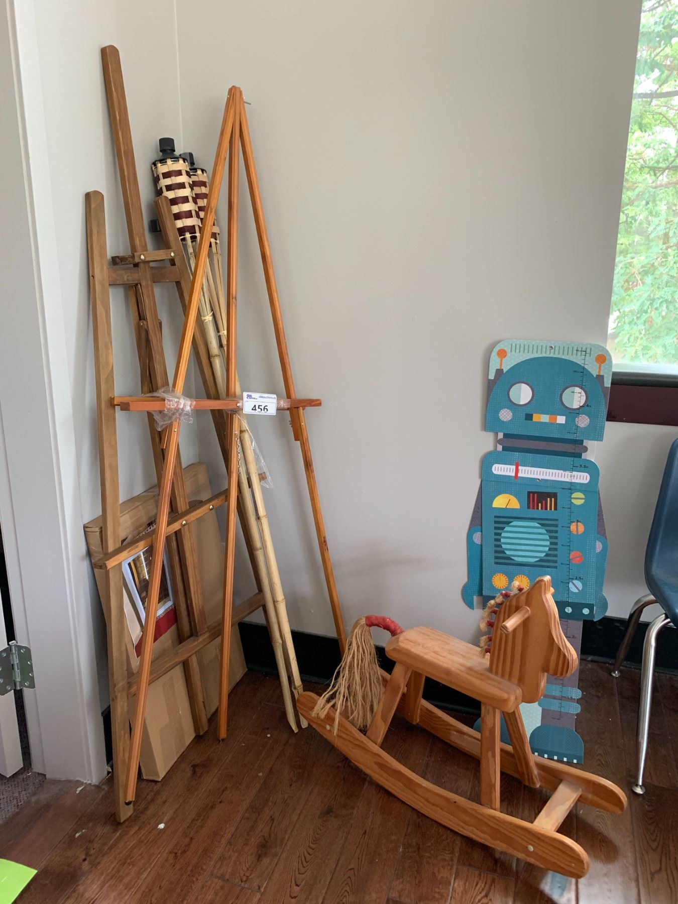 ASSORTED ITEMS INCLUDING; ROCKING HORSE, ROBOT CUT-OUT, EASELS & MORE