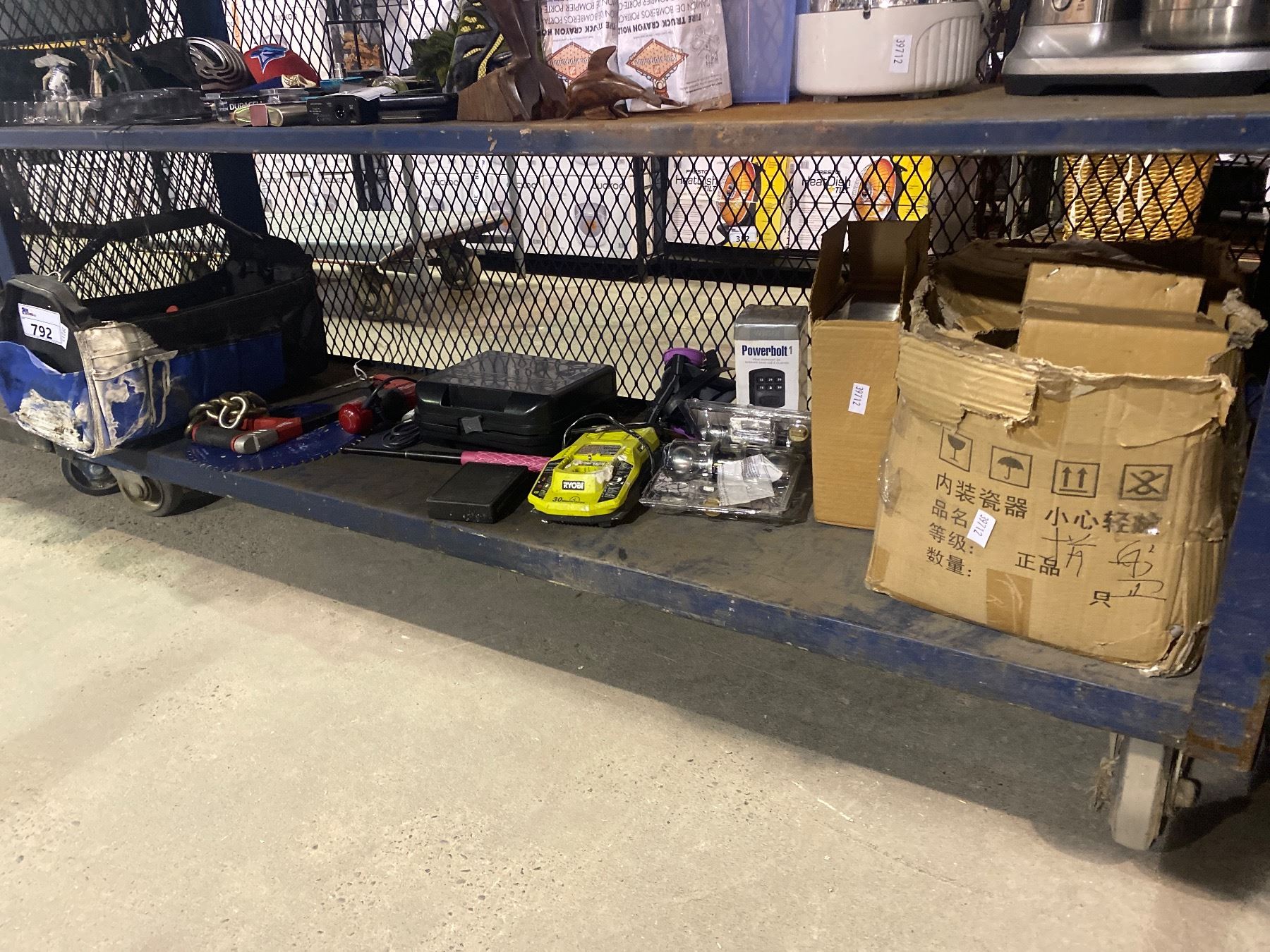 ASSORTED ITEMS INCLUDING; SAWS, RYOBI BATTERY CHARGER, POWERBOLT 1 & MORE