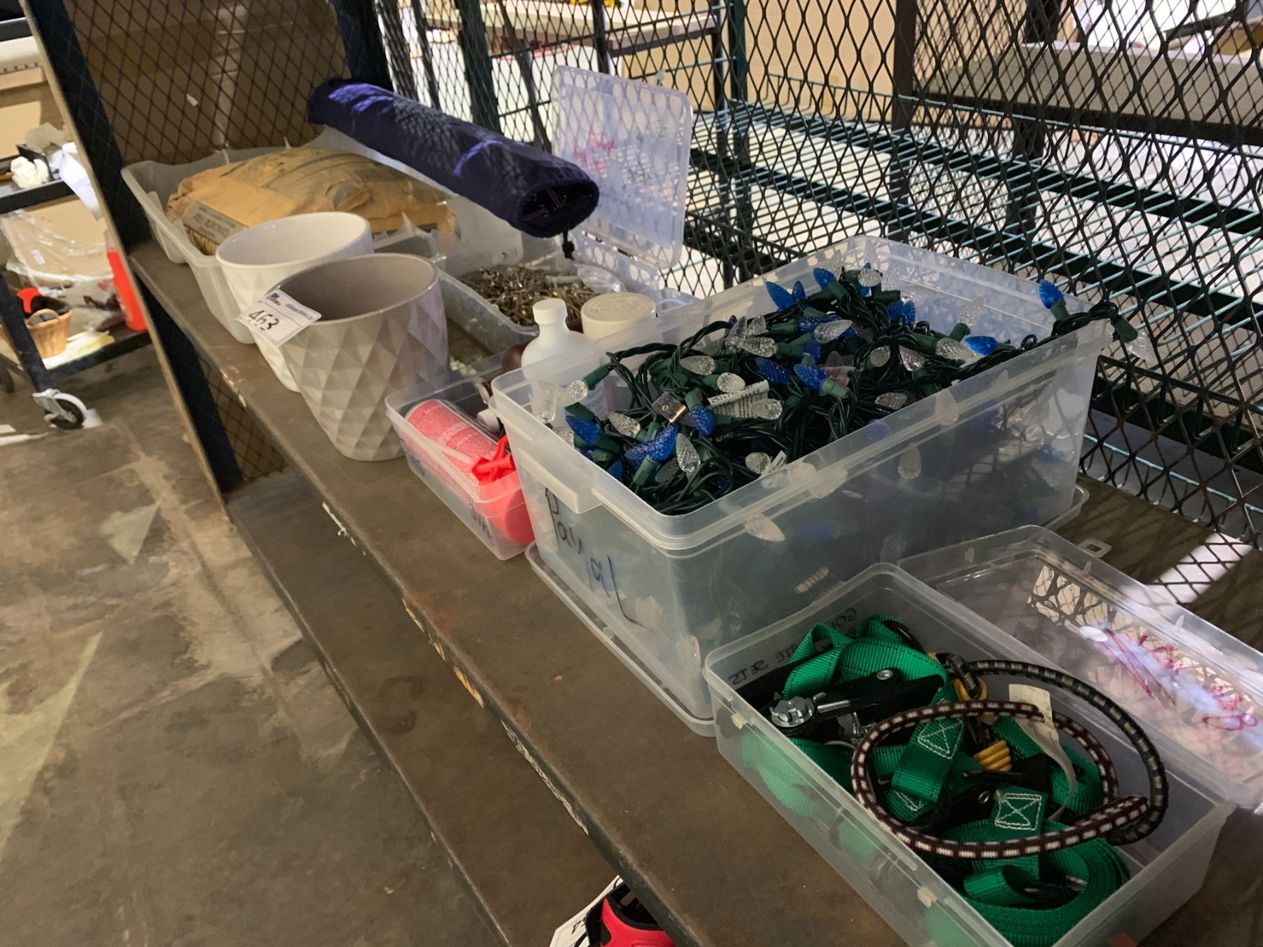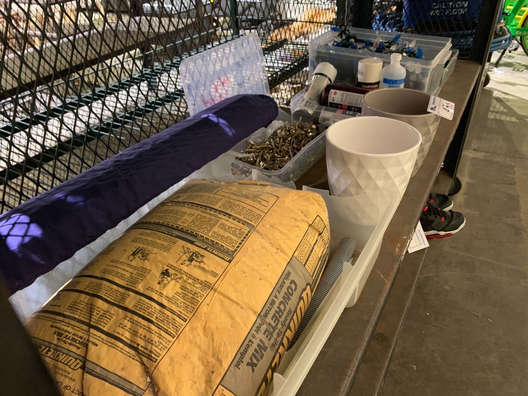 ASSORTED ITEMS INCLUDING; WALL MOUNT MAGNET STRIPS, HYDROGEN PEROXIDE, RATCHET STRAPS & MORE