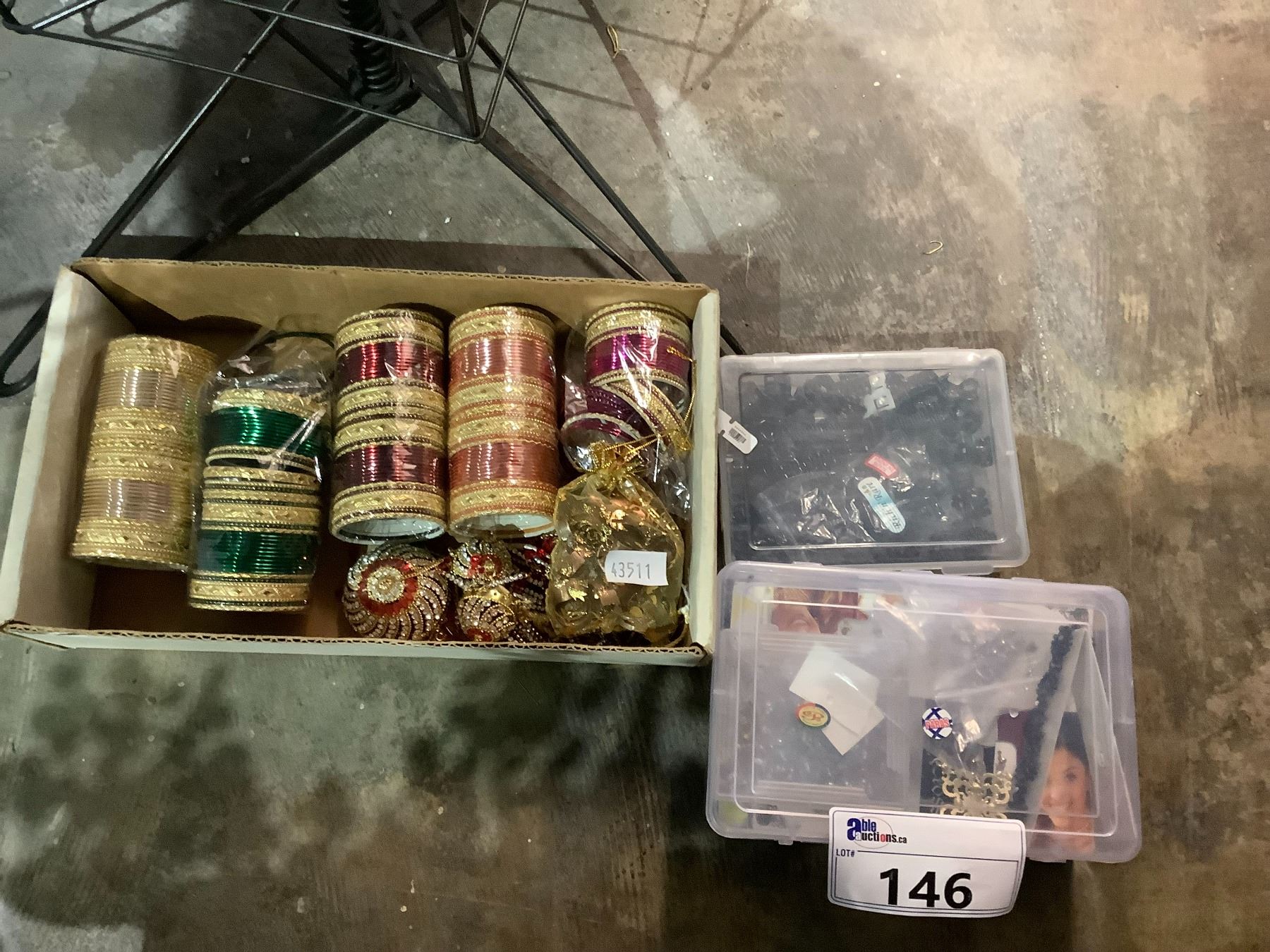 ASSORTED JEWELRY & MORE INCLUDING; BANGLES, HAIR CLIPS, METAL JEWELRY STAND & MORE