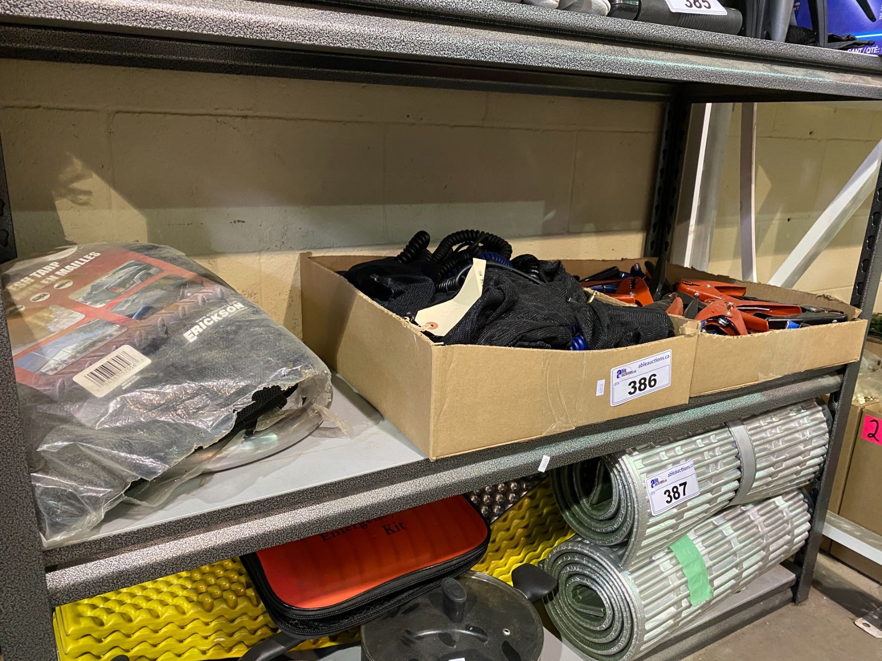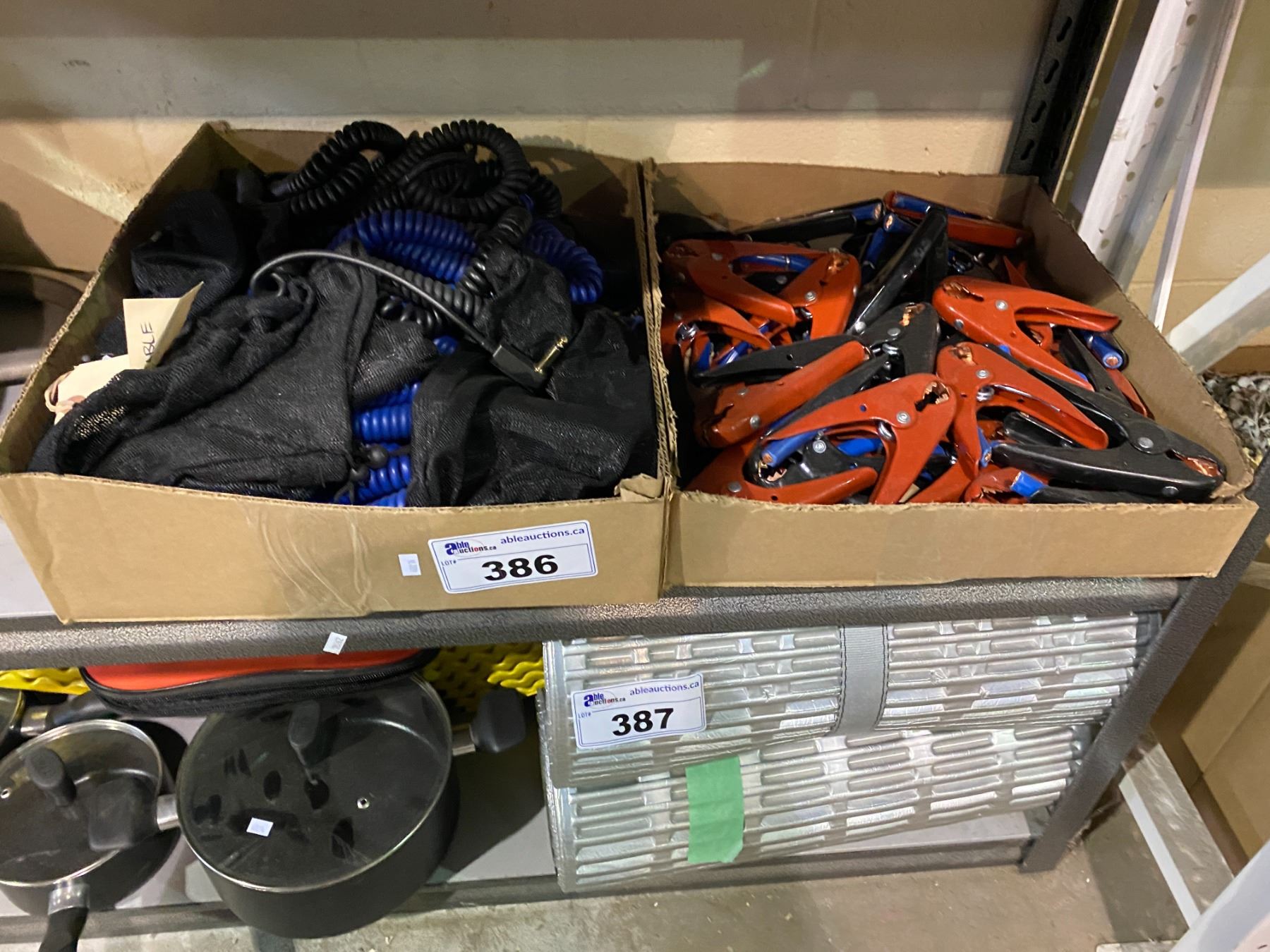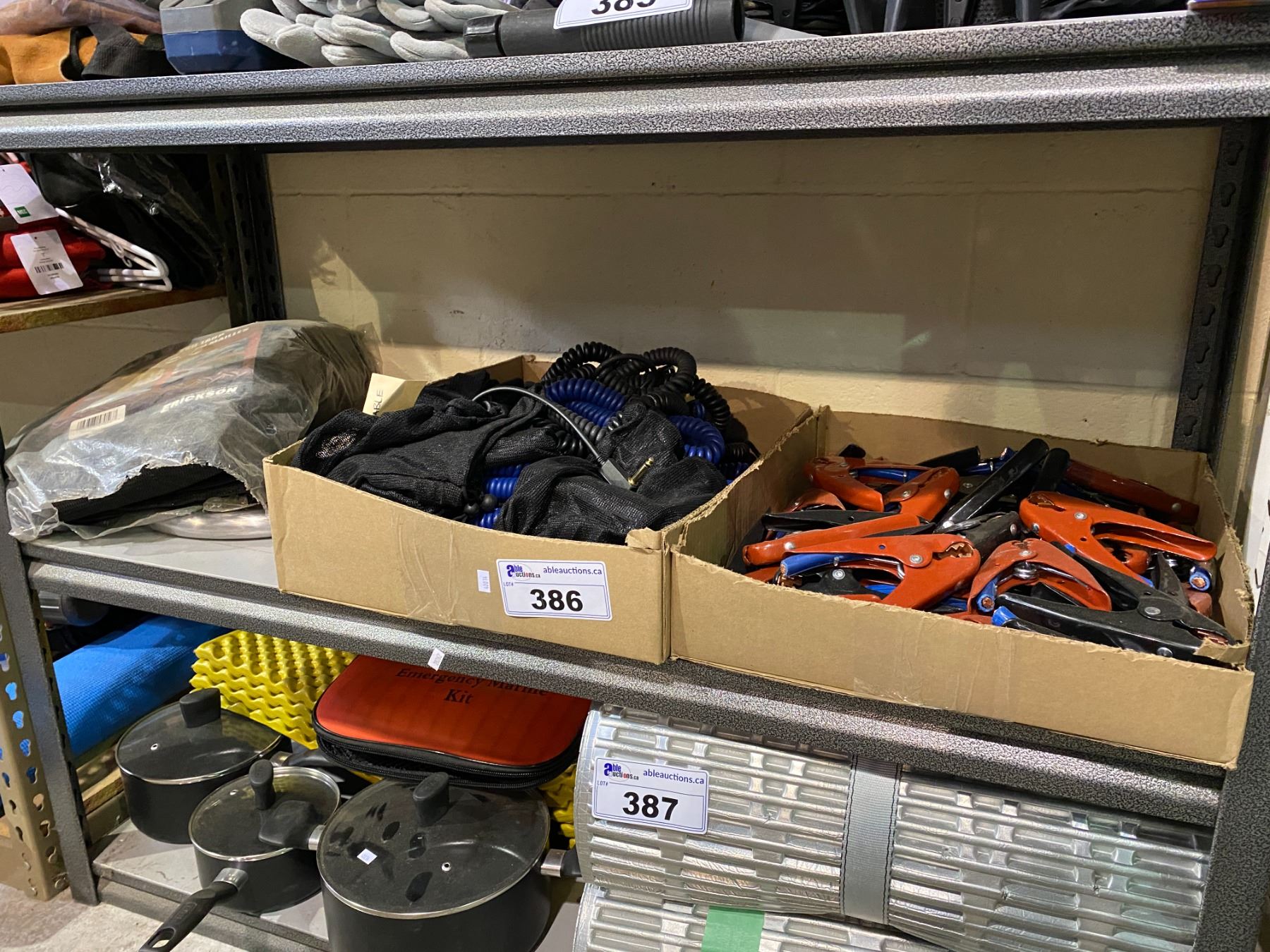 ASSORTED JUMPER CABLE CLIPS, BUNGEE WIRES, & TARP