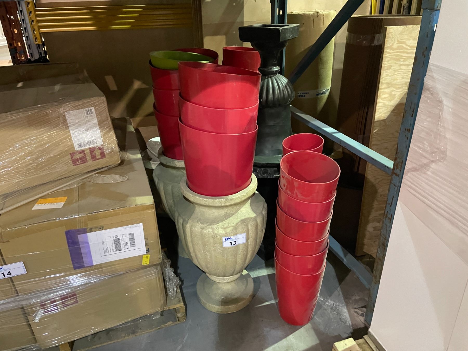 ASSORTED LARGE PLASTIC & FAUX STONE PLANTERS