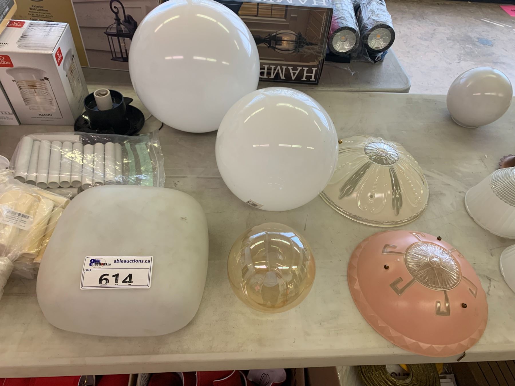 ASSORTED LIGHTING INCLUDING; LAMP SHADES, GLOBE LIGHTS, WALL FIXTURES & MORE (TABLE NOT INCLUDED)