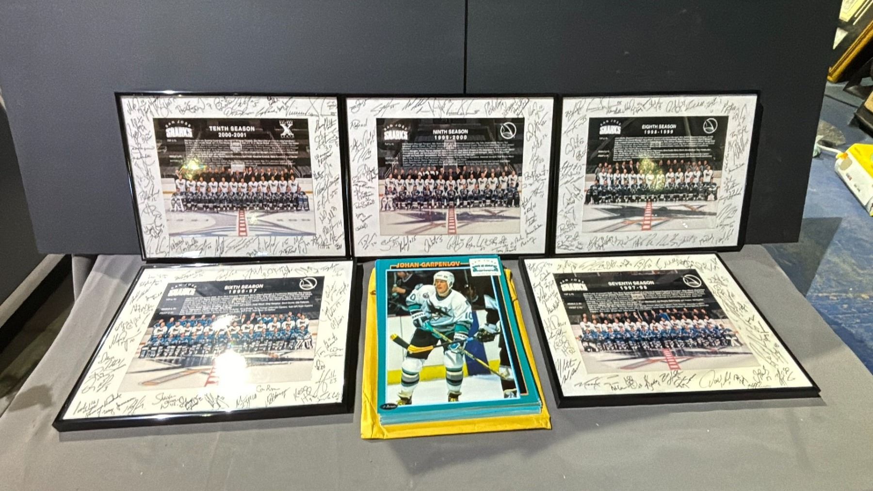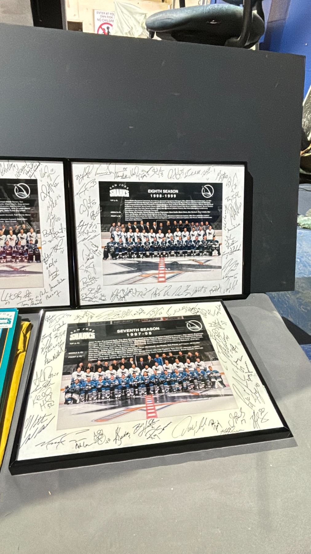 ASSORTED LIMITED EDITION SAN JOSE SHARKS PHOTOS AND 5 FRAMED SAN JOSE SHARKS TEAM AUTOGRAPHED PHOTOS FROM 1996-2001