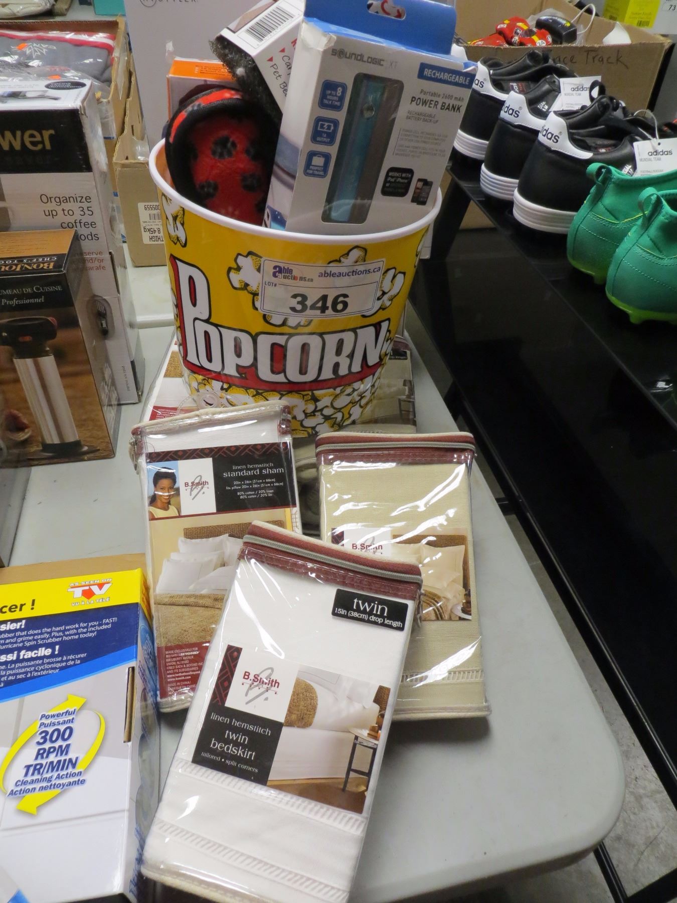 ASSORTED LINEN/POPCORN BUCKET/POWERBANK/INSTYLER BLU TURBO IONIC DRYER/MISC