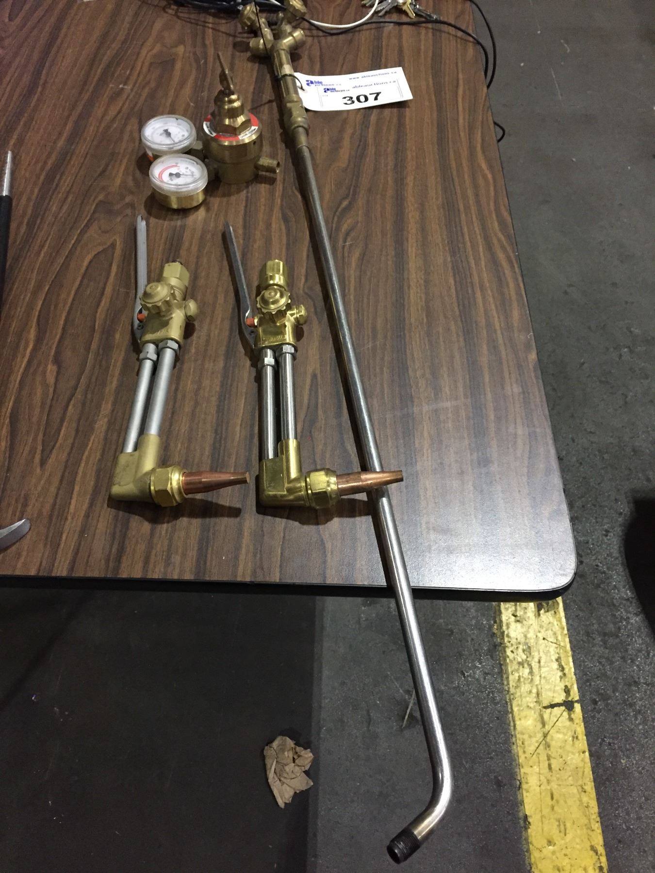 ASSORTED LOT OF 3 CUTTING TORCH HEADS AND GAGE
