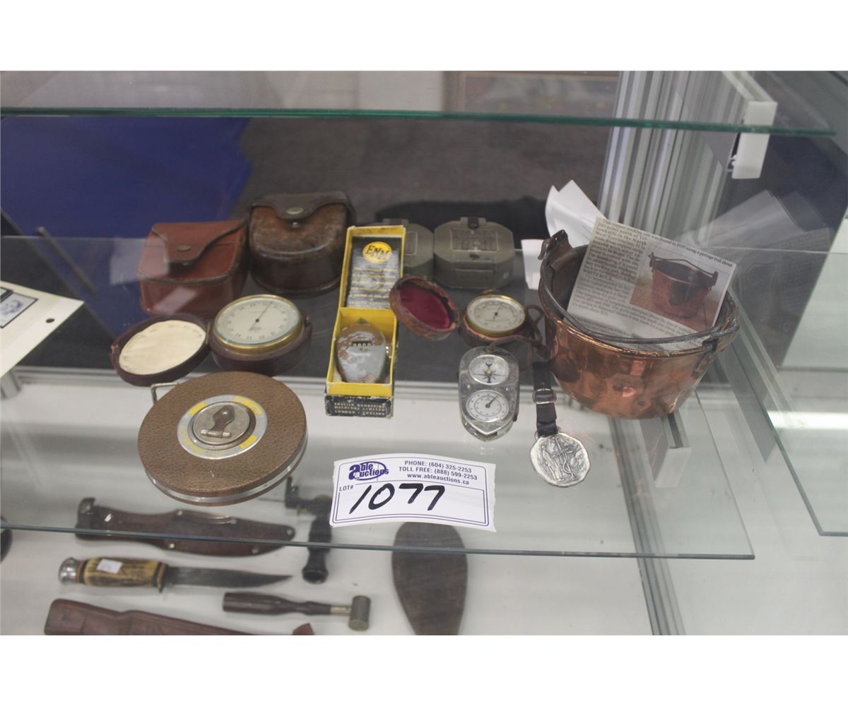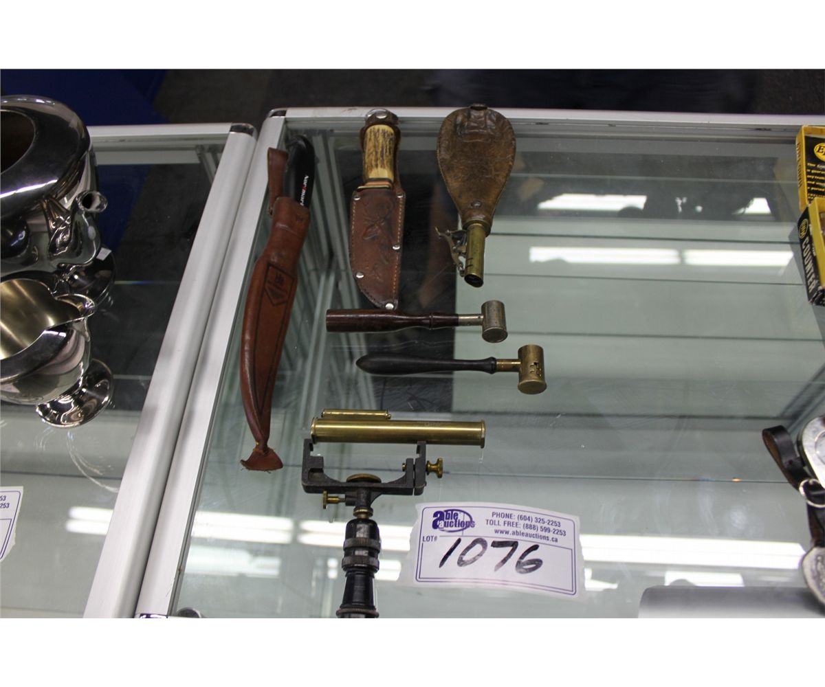ASSORTED LOT OF KNIVES, GUN POWDER SATCHEL