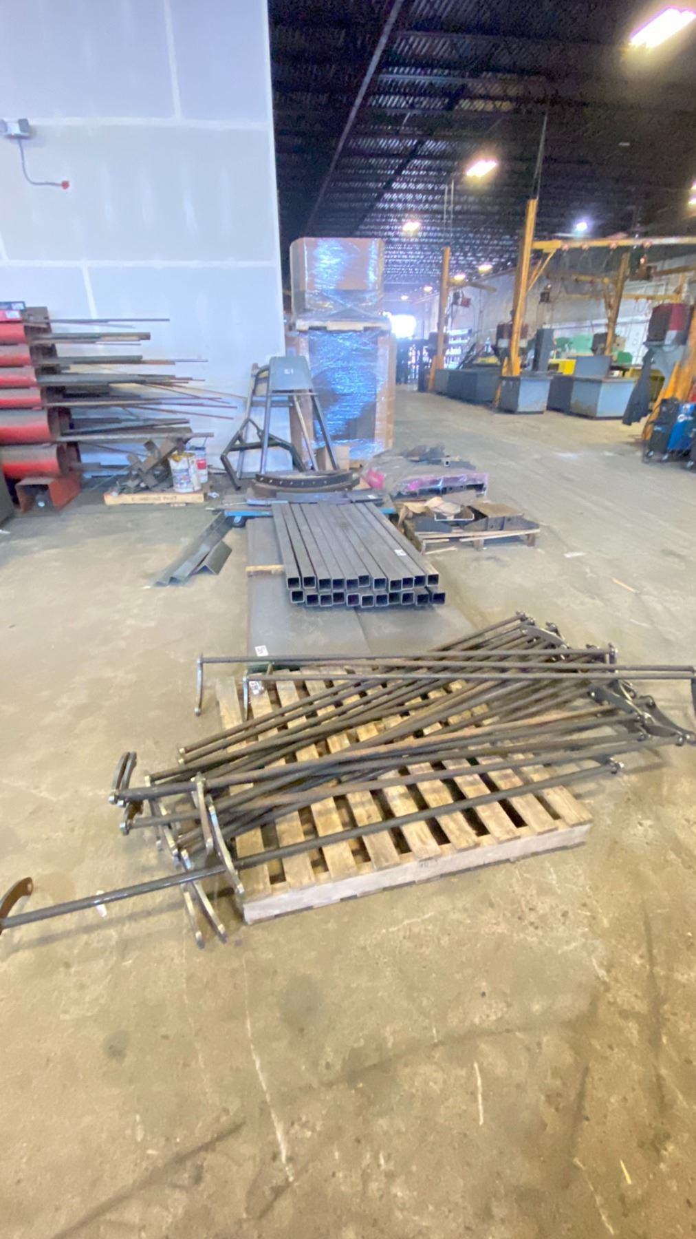 ASSORTED METAL MATERIAL & PARTS VARYING IN SIZE/LENGTHS INCLUDING STEEL RODS, SQUARE TUBING, SCRAP,