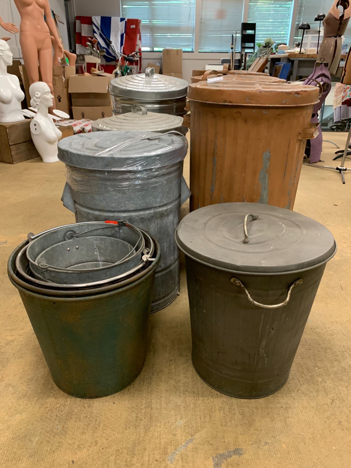 ASSORTED METAL WASTE BINS & BUCKETS