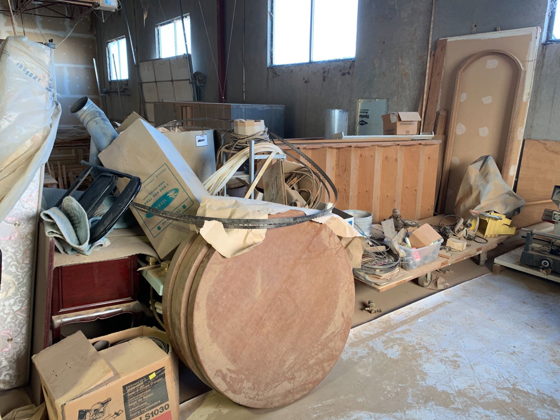 ASSORTED MISCELLANEOUS NORTH CORNER OF MEZZANINE INCLUDING FURNITURE ITEMS, HARDWARE, & TOOLS *UPSTAIRS*