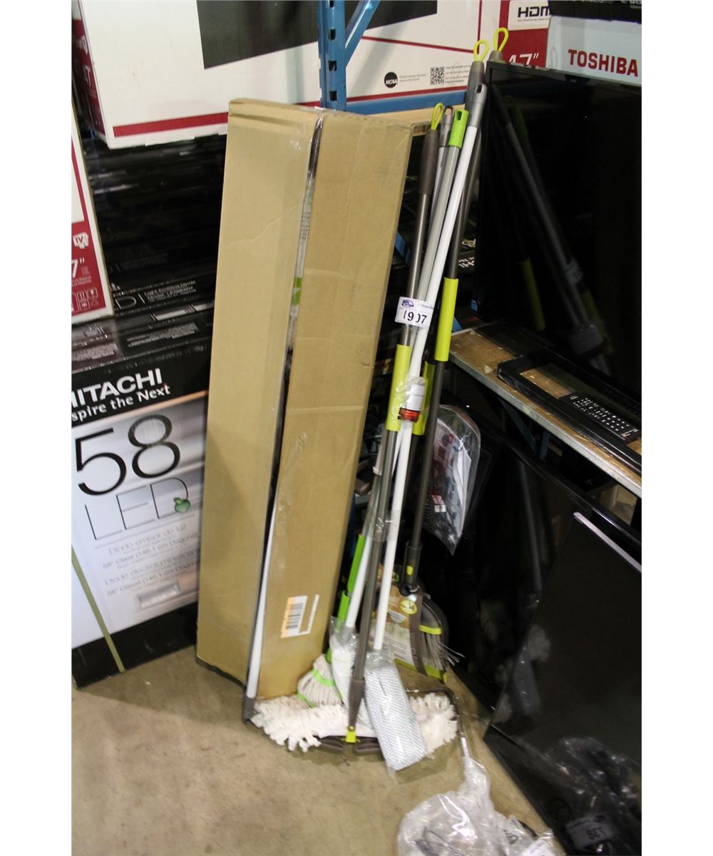 ASSORTED MOPS AND BROOMS