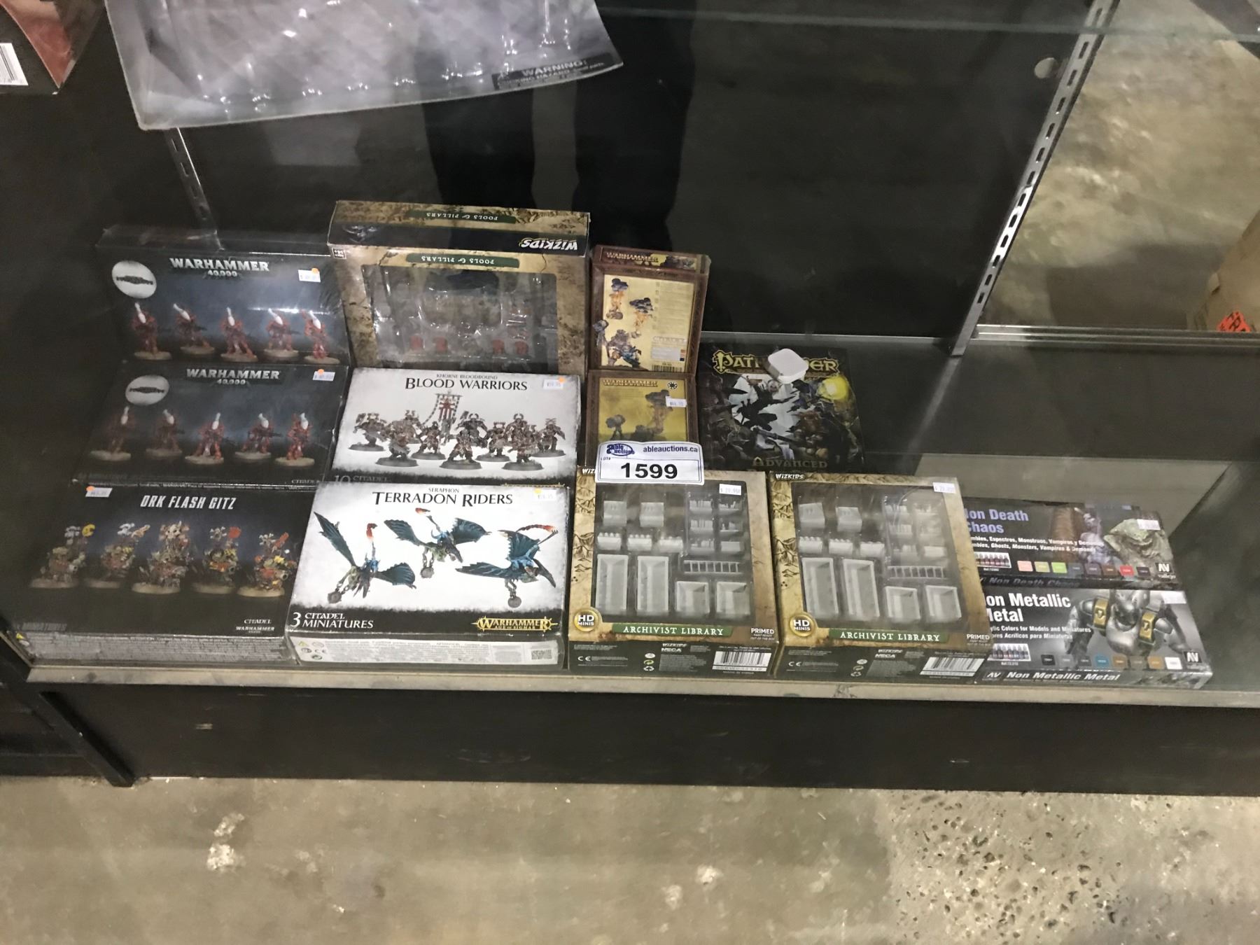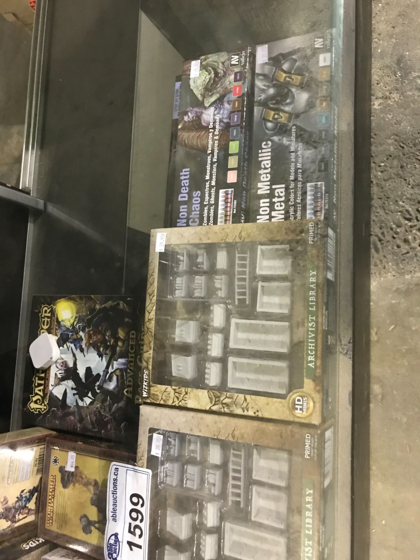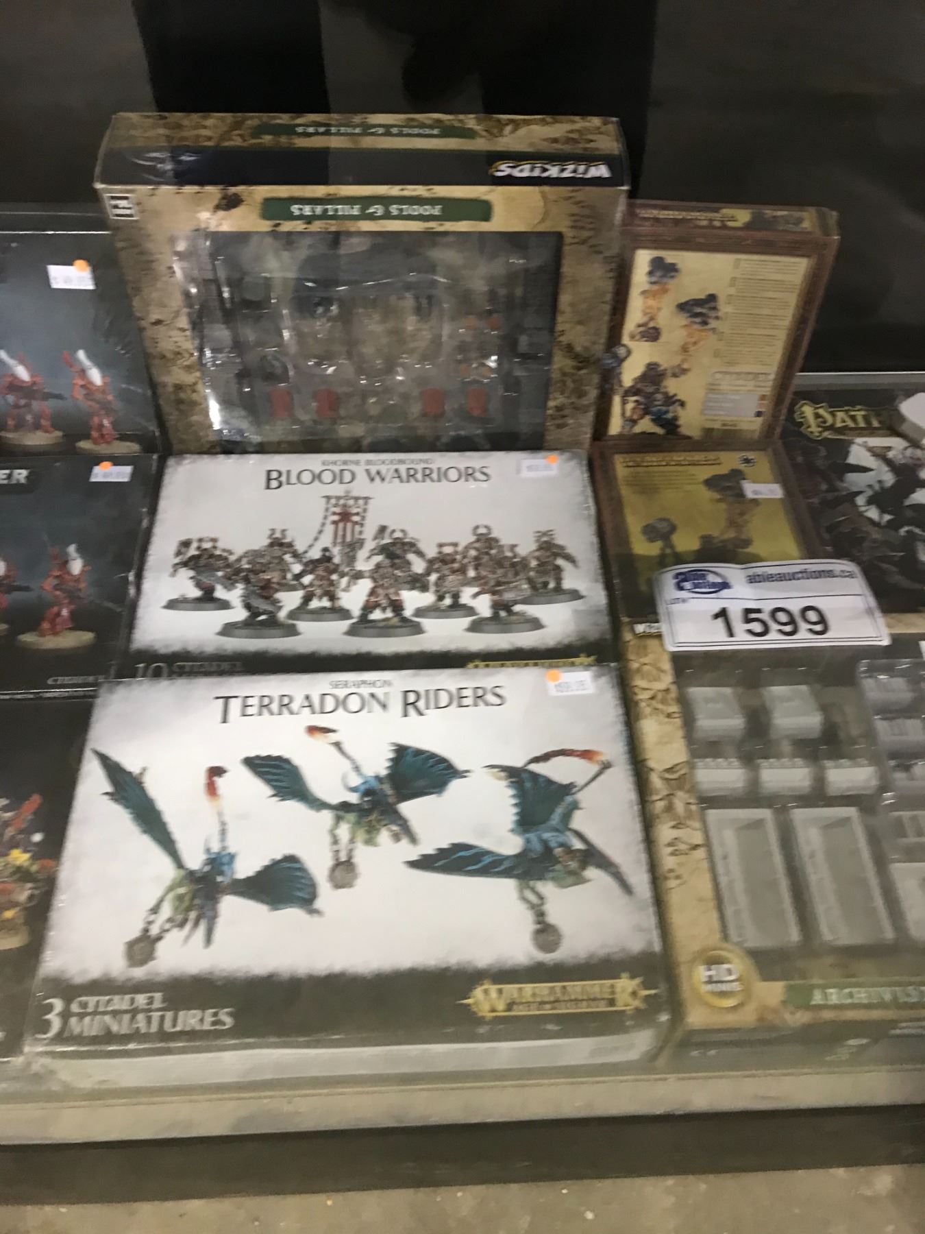 ASSORTED NEW IN BOX WARHAMMER FIGURES, POOL 7 PILLARS, ARCHIVIST LIBRARIES, ASSORTED PAINTS & MORE