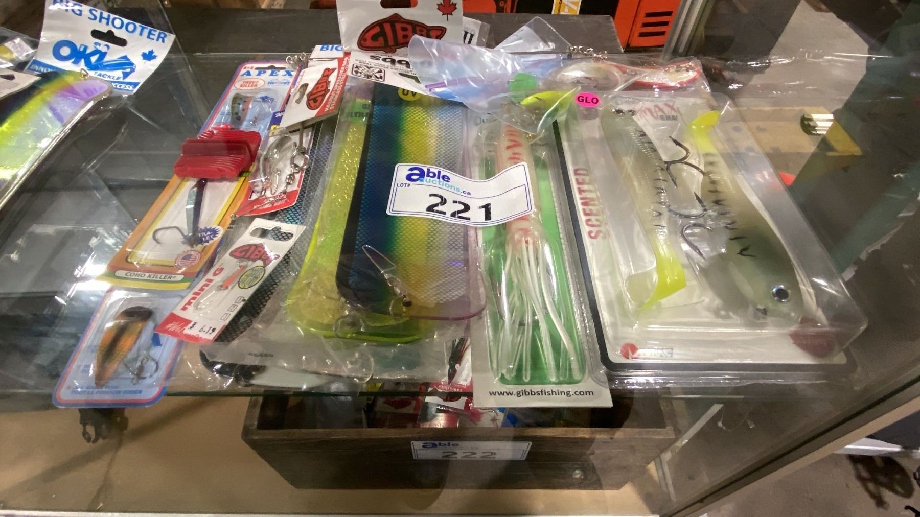 ASSORTED NEW RETAIL FISHING HOOKS, SPINNERS, BOBS, & PACKAGED TACKLE ITEMS