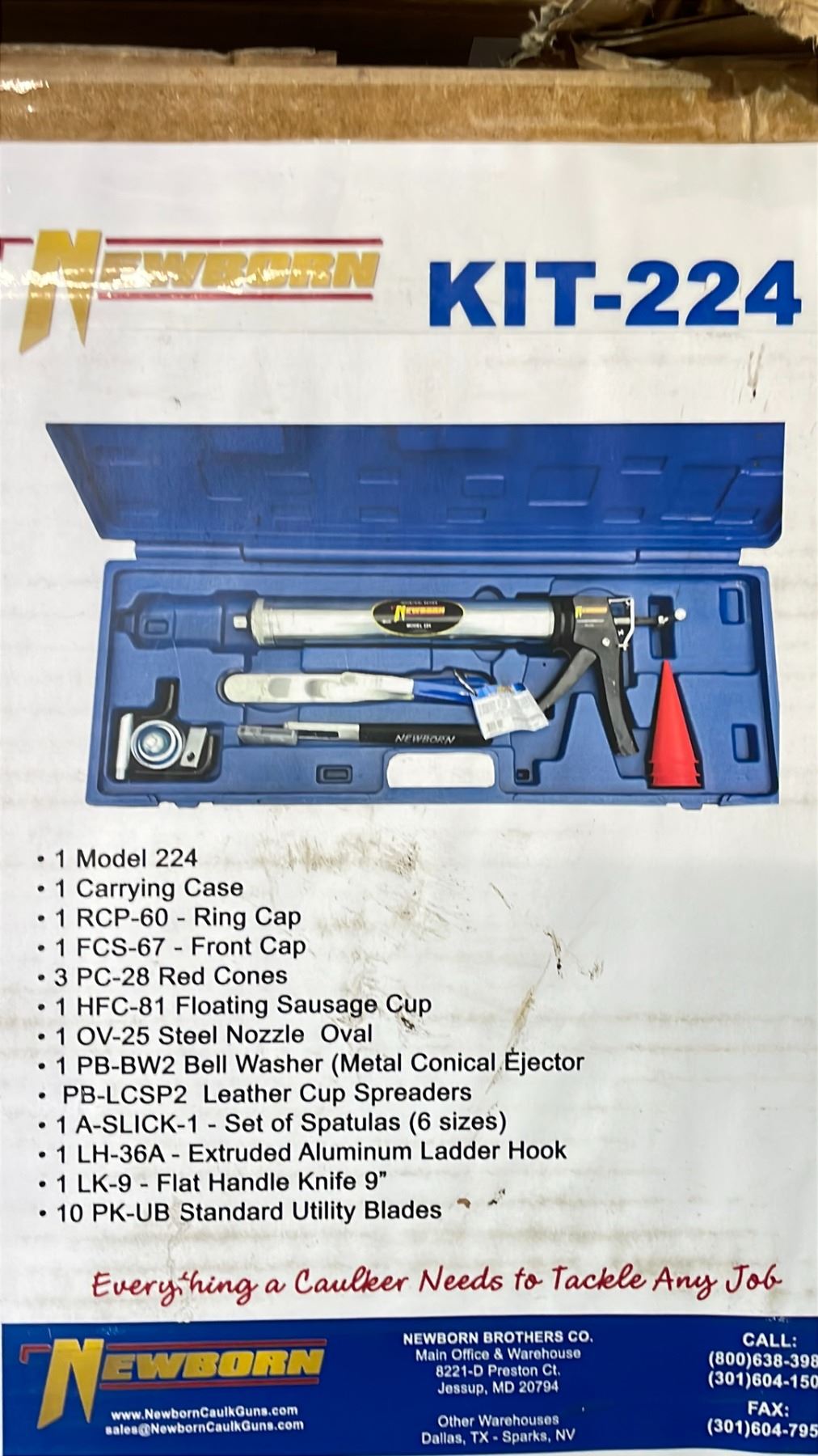 ASSORTED NEWBORN CAULKING GUN KITS IN HARD CARRY CASES