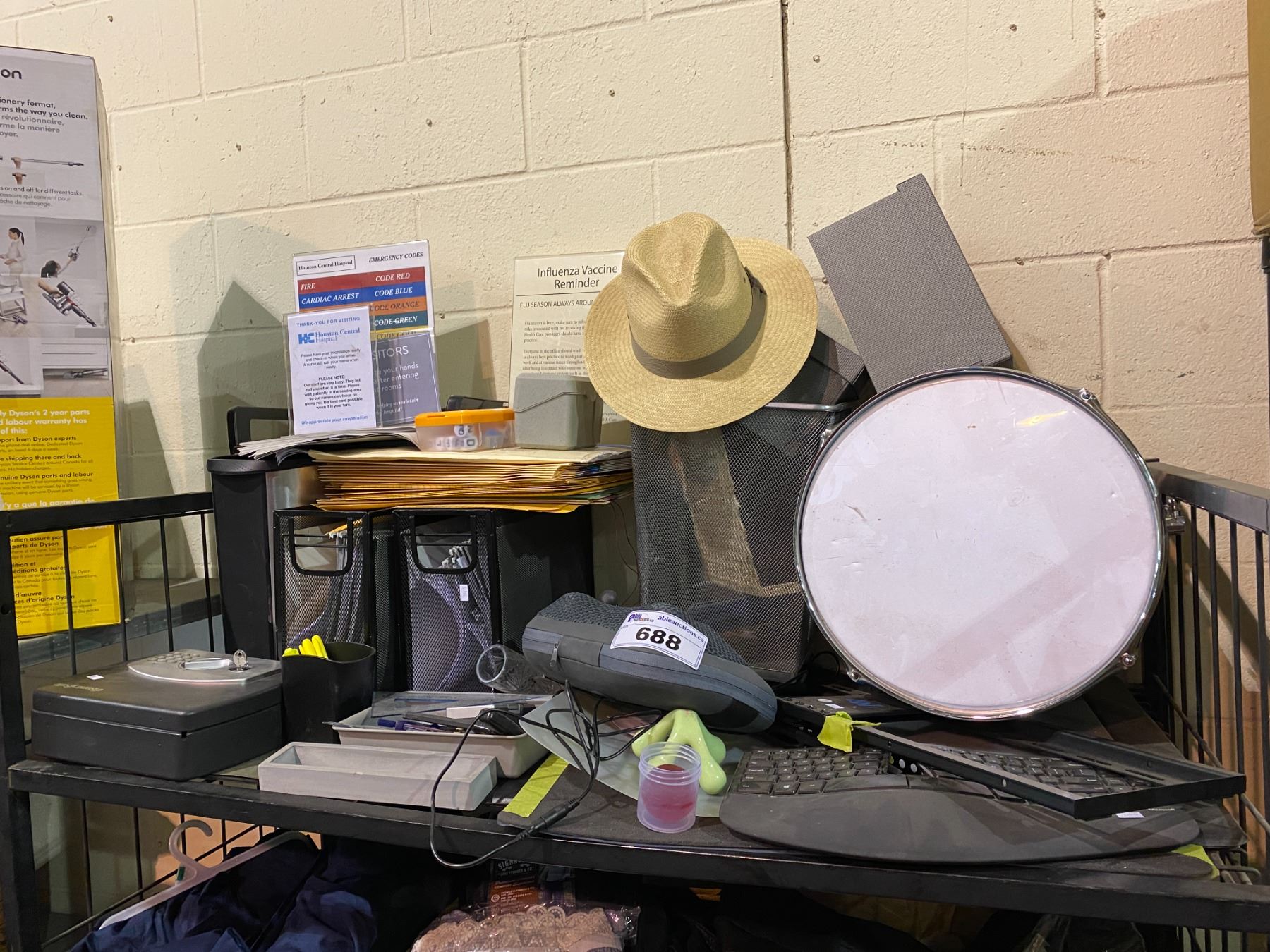 ASSORTED OFFICE SUPPLIES, KEYBOARD, DRUM & MORE